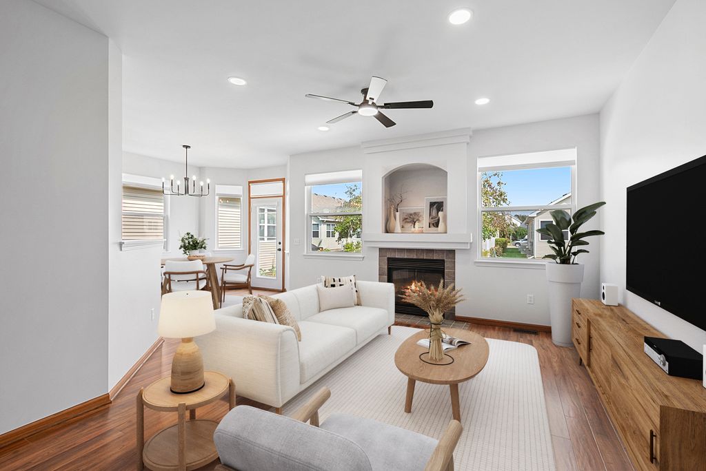 Fully Renovated 2-Bed/2-Bath Ranch in Premier 55+ Gated Community with Resort-Style Amenities. Move right into this beautifully updated ranch home where every detail has been thoughtfully designed for comfort, style, and ease of living. Step inside to find premium engineered hardwood flooring and fresh professional paint throughout, creating a seamless and inviting flow. The open-concept main level features a spacious eat-in kitchen with brand-new stainless steel appliances, stunning quartz countertops, and abundant cabinetry. A formal dining room and expansive great room with a cozy fireplace make entertaining effortless. The private primary suite offers a serene retreat with a newly renovated spa-style bath, modern fixtures, and a walk-in closet. A second bedroom and fully updated hall bath provide the perfect setup for guests or family. Conveniently located off the two-car attached garage, the mudroom/laundry area includes a new washer and dryer. Enjoy outdoor living on your private back patio-ideal for grilling, entertaining, or simply relaxing. The freshly painted basement offers abundant storage and future finishing potential. This home has been completely refreshed with upgrades including a newer roof, new hot water heater, updated toilets, new ceiling fans, LED lighting, modern fixtures, and smoke/carbon monoxide detectors throughout. Residents of this sought-after gated community enjoy resort-style amenities: a fitness center, indoor and outdoor pools, and a vibrant clubhouse with year-round activities. Don't miss your chance to own this move-in ready designer home with an award-winning layout in an active, private 55+ community. Schedule your private showing today!