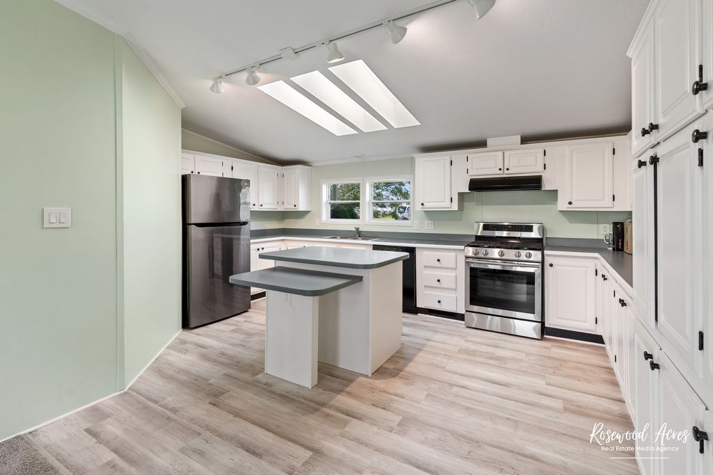 This Modular home on a permanent foundation is ready for new owners. It has a spacious open floor plan with a den/ office off the entry. The large living space has abundant natural light and sliding doors to the backyard deck. The primary bathroom has been fully updated, and the whole home has been freshly painted. New carpet and flooring throughout. Kitchen with lots of cabinets, an island, and a skylight. Split floor plan. Step onto the deck to enjoy the beautiful outdoors with loads of space for your outdoor hobbies. Included are the three storage containers located at the back of the property. These shipping containers are in great condition. The two cream containers are 25x10 and have doors at the front and back, allowing for vehicle storage as they are drive-through. The third container, at almost 8 feet wide and 45 feet long, is ready for storage or whatever you would like.