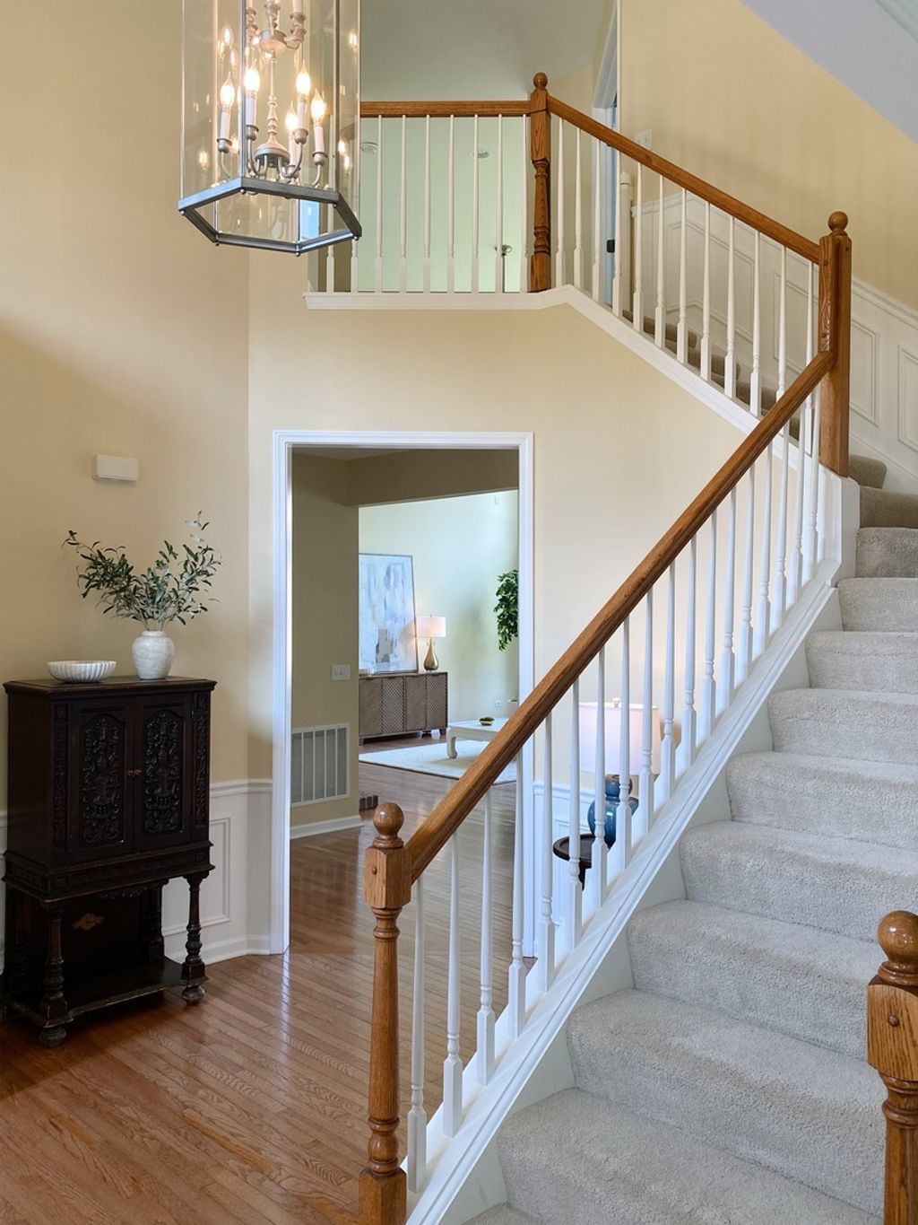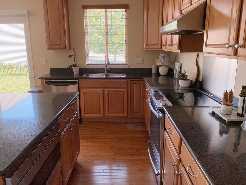 Welcome to this stunning home in the highly sought-after Hampton Reserve neighborhood-where luxury, comfort, and thoughtful design come together! Step inside to be greeted by a dramatic double foyer that sets the stage for the open and inviting floor plan. Rich hardwood floors extend throughout the entire first floor, complemented by impressive 9-foot ceilings that create an airy and elegant atmosphere. The formal living and dining areas provide the perfect setting for holiday celebrations, birthdays, or intimate gatherings. The spacious eat-in kitchen features granite countertops, abundant cabinetry, an upgraded exhaust system, and a luxurious built-in microwave drawer-combining sleek, modern convenience with a professional feel. The kitchen opens seamlessly into the expansive family room, which boasts eight large windows, bathing the space in natural light. Cathedral ceilings and a cozy gas-start fireplace complete this impressive central gathering area. A rare main-level in-law suite with a full bath offers incredible flexibility and is ideal for guests, extended family, or a home office. Upstairs, the luxurious primary suite is a true retreat, featuring hardwood floors, tray ceilings, a spa-like bathroom with a jacuzzi tub and separate walk-in shower, and his-and-hers walk-in closets. Nearly every bedroom includes a walk-in closet and two large windows, ensuring bright, light-filled spaces throughout. Three of the five bedrooms in this home feature hardwood flooring, offering both style and functionality. The full unfinished basement, with 9-foot ceilings, offers a blank canvas for a home theater, gym, play area, or storage-perfect for customizing to your needs. Many high end upgrades to include basement fresh air ventilation system with programable controls, Ecobee thermostats, AprilAire humidifier. The home sits on a prime corner lot, larger than most in the neighborhood, with a beautiful, professionally installed fence that enhances both privacy and curb appeal. This home is perfectly situated in a highly walkable neighborhood. A world-class park district facility is within walking distance, offering a gym, a variety of fitness classes, the Barefoot Bay water park, and tennis courts. Also within walking distance are a great daycare and preschool, Mechanics Grove Elementary School, and the Fremont Public Library. Excellent sidewalks and trails provide opportunities for daily walks, jogs, or bike rides-making it ideal for active families. Combining timeless finishes, modern updates, abundant natural light, and thoughtful design, this exceptional Pulte-built Devonshire model offers everything you need for comfortable, elegant living in one of the area's most desirable neighborhoods.