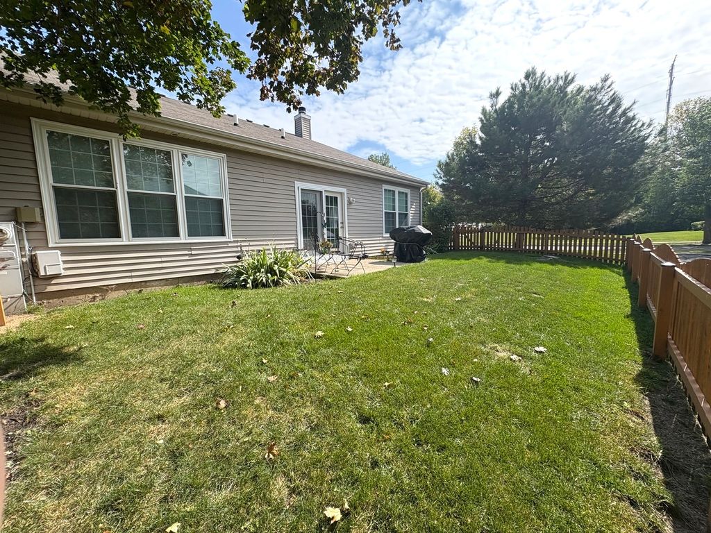 Look No Further! One Level Living, 2-Bed, 2-Full Bath, 2-Car Garage, Fenced Backyard with Pond View and Walking Trail. Spacious corner lot in beautiful neighborhood. Abundant natural light with vaulted ceilings, new windows and newer French doors to patio, charming wood-burning/gas fireplace for cozy evenings. The primary suite overlooks the tranquil pond and boasts a soaking tub, separate shower, and a generous walk-in closet. The versatile second bedroom, with French Doors, is ideal as a guest room or home office. Enjoy the fully fenced backyard with direct access to scenic walking trails. Move-in ready, this one is a must-see! Newer Paint, New Windows, Floors, Water Heater and Leaf Filter
