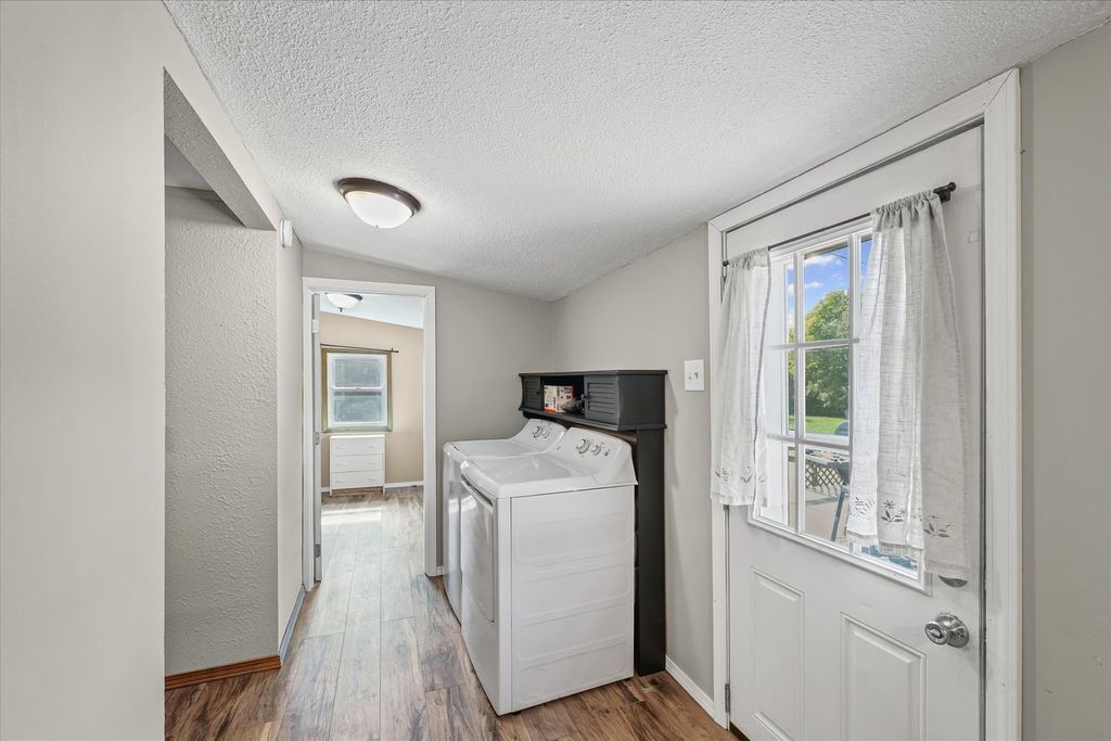Discover this inviting 2-bedroom, 1-bath home featuring a welcoming enclosed front porch, partial basement, and attached garage. Freshly painted with new flooring throughout, it also boasts all-new stainless steel appliances and new light fixtures for a modern touch. The enclosed porch fills the entry with natural light and offers a cozy spot to relax, while the well-planned kitchen makes daily living easy. Bedrooms are warm and comfortable, and the backyard deck creates an ideal outdoor retreat. Perfect for first-time buyers or investors seeking a well-maintained property. Schedule a private showing to explore all this home has to offer!