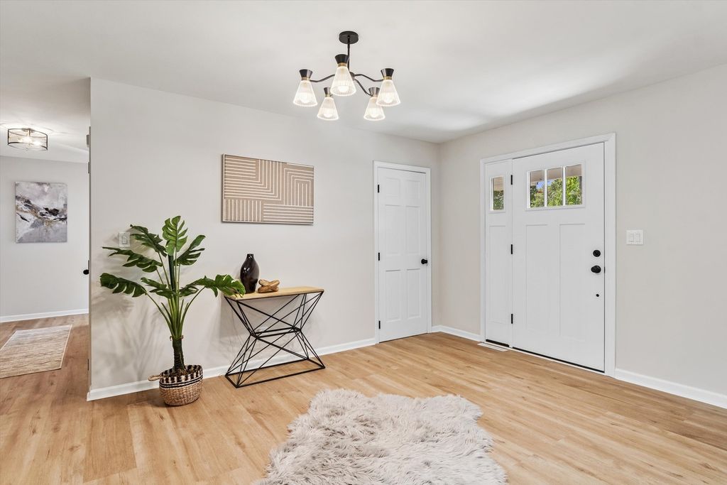 This beautifully updated ranch with a finished basement sits on a .36 acre corner lot. Many news include ~ tear off roof, luxury vinyl flooring, new baths, new kitchen with quartz and new stainless steel appliances. Freshly painted including trim and doors, all new light fixtures. More than 2200 sq ft of living space. The finished basement has laundry and 1/2 bath. Unfinished portion offers plenty of storage. The side driveway adds an additional option for access to the oversized (4 car) garage.