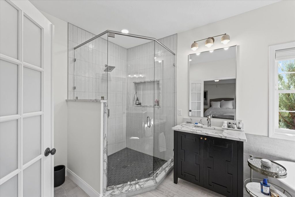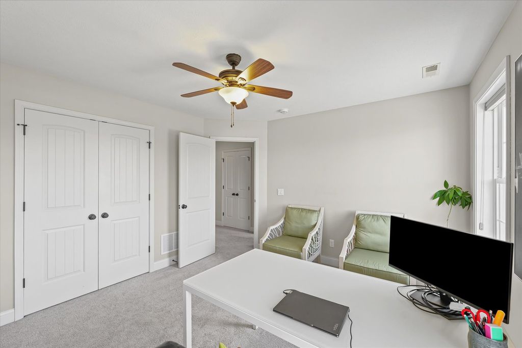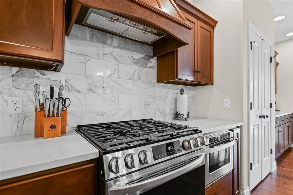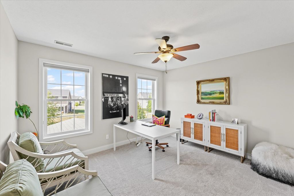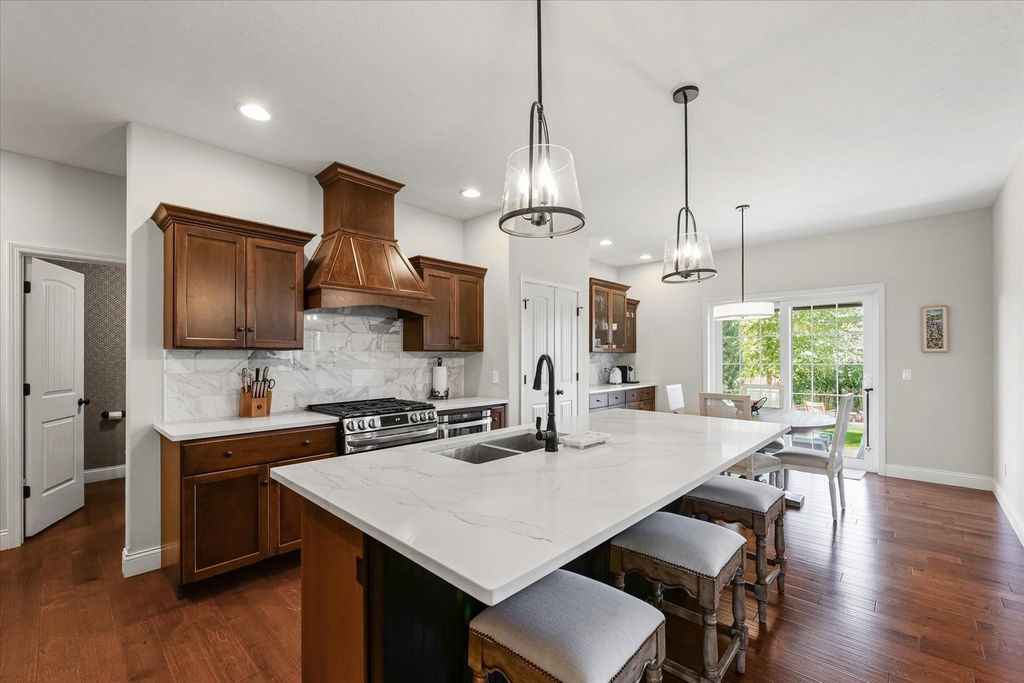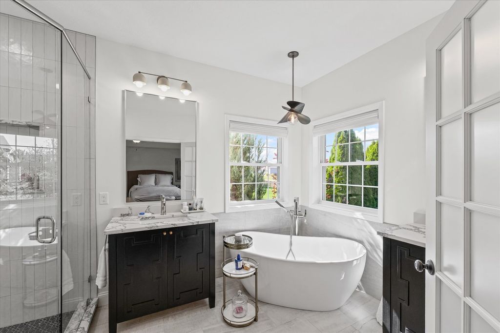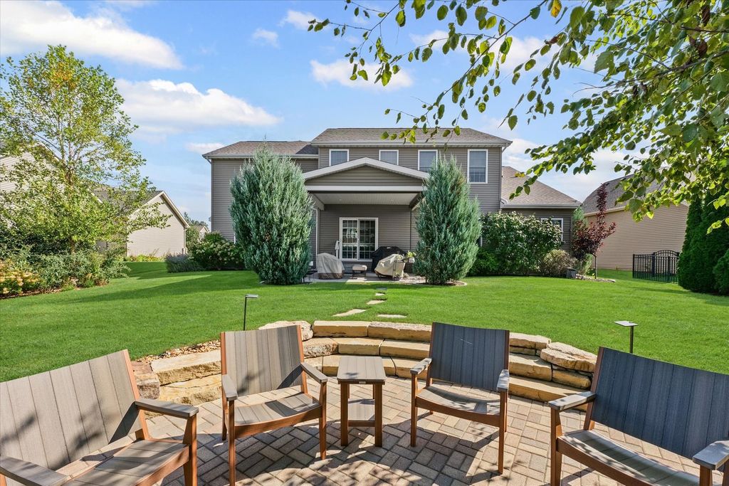 This elegant 6 bedroom, 4.5 bathroom, West Champaign home has everything you could ever want in the Trails at Abbey Fields subdivision. As you walk in you are greeted with a two-story foyer and living room with ample natural lighting. In the designer kitchen your eyes will be drawn to the lovely quartz counter tops and marble backsplash that brighten the room and compliment the gorgeous cabinetry. The primary bedroom features a walk-in closet, hardwood floors, and a brand new professionally designed bathroom. The primary bathroom showcases tile imported from Spain as well as marble and quartz in the shower, radiant heated floors, a new freestanding soaker tub, and updated light fixtures. Upstairs you will find 4 bedrooms and 2 more full baths as well as an oversized loft space that could be used as an extra sitting area. The full finished basement offers additional room for entertainment as well as another bedroom and full bathroom. The rec room in the basement could be a great theater room or gym. Outside you can enjoy the privacy of the backyard that was professionally landscaped by Brown Woods with a gas firepit in a secluded sitting area, a pergola with remote sun shades on all three sides and various shrubs/trees that provide privacy throughout the whole year. The backyard is perfect for relaxing and enjoying the outdoors at all times of the day. Other outdoor features include an irrigation system and various blooming plants that have been placed strategically around the home so that you can enjoy views of them from every window.