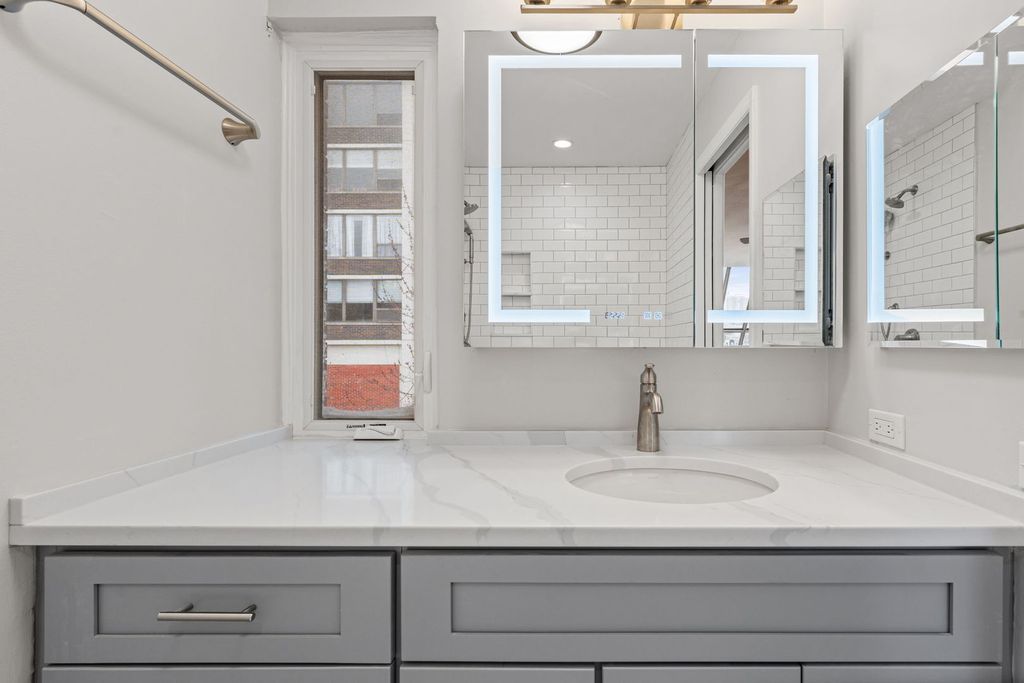 Sun-drenched Lofted Townhome with large, generous Private Patio! Fully renovated, move in ready and rarely available, this townhome at Sandburg Terrace was completely renovated in 2026 and is flooded with natural light from 16-ft ceilings, abundant windows and a dramatic skylight. The open main level flows to a huge private patio perfect for entertaining, relaxing or urban gardening. The chef ready kitchen features a breakfast bar, soft close cabinetry with undercounter and soffit lighting, quartz countertops, double sinks, and a brand new GE appliance package. A stylish new half bath with Toto wallmounted toilet completes the main floor. Upstairs, a generous loft/primary area offers ample closets and a beautifully appointed full bath with Kohler fixtures, quartz vanity, lighted two way mirrored cabinetry and modern lighting. Systems and finishes are all new: HVAC system, copper plumbing, updated electrical, new vents, Hunter Douglas window coverings, brushed nickel hardware, and a Bosch Connect washer/dryer with WiFi. Every detail was thoughtfully upgraded for comfort and convenience. Enjoy Sandburg amenities - pool with cabanas, tennis courts and manicured gardens. Walk to Potash grocers, the new Fresh Market, Jewel, Starbucks, two summer farmers' markets, pharmacies, and just a block to Old Town and half mile to Lincoln Park. Urban living with a tranquil private outdoor oasis.