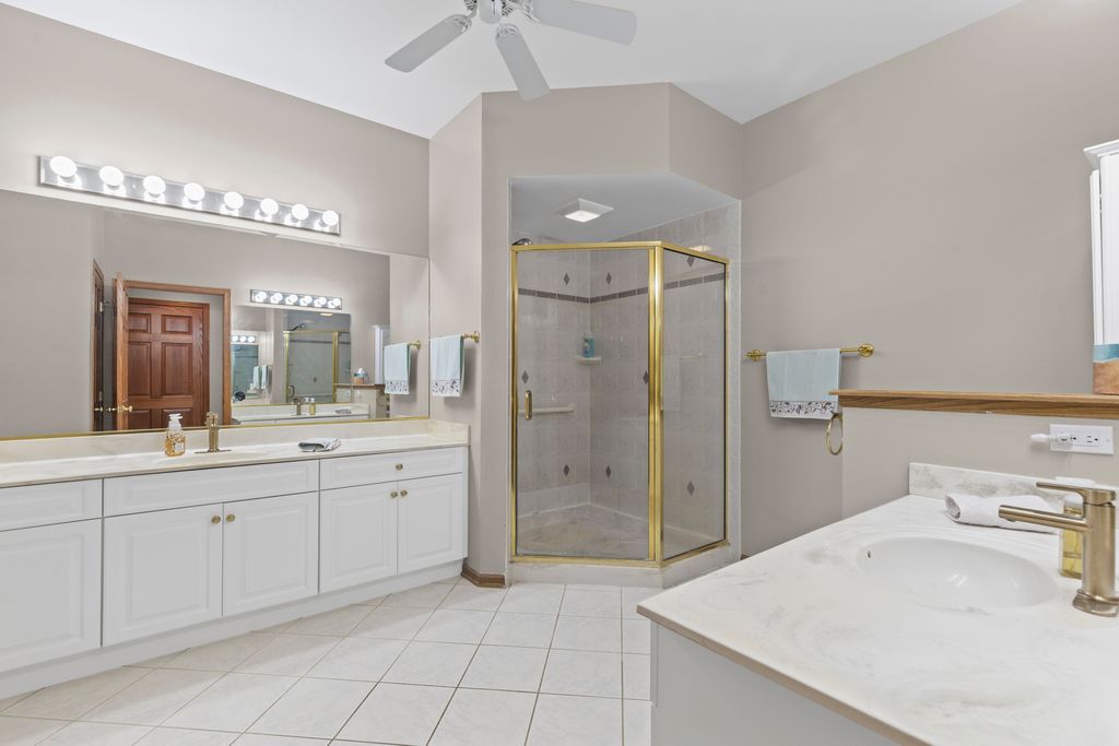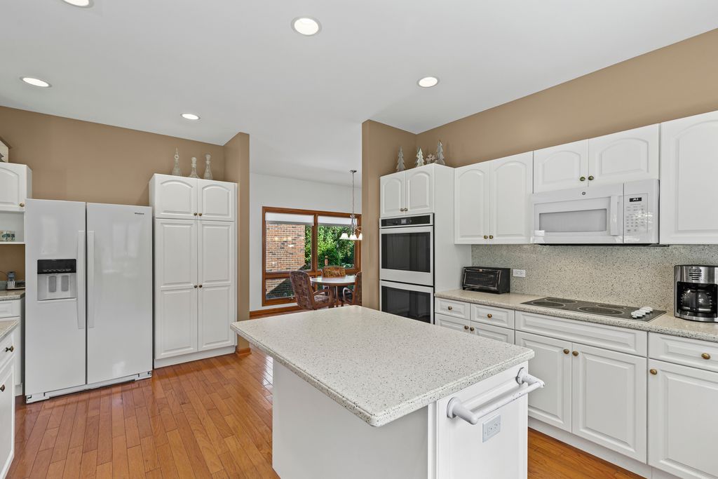 WELCOME TO THE OAKS CLUB, A Private Gated Community, (No Age Limits) where homes sit in a forest of Tall Oaks & Shagbark Hickorys, Three landscaped Ponds, with lit Flowing Fountains. Walking path through the common area. Maintenace Free with the HOA Landscaping, Snow Removal.(Per HOA Documents) Open concept RANCH STYLE HOME, with an OVERSIZED LOT & HALF PARCEL-2450 sq ft of Main Floor Living space. 1520 sq ft of finished lower-level living space. Total Livable sq ft. 3970. HUGE First Floor MASTER with Luxury Bath and walk in Closet. Second BR, with walk in closet and access to 2nd FULL BATH. GREAT ROOM has a Vaulted ceiling, open concept to both Kitchen and Dining area. White Cabinets for that easy to Decorate Neutral Decor. Kitchen is adjacent to a 11x14 eating area or sitting room, First Floor Laundry and Mud Room with entrance to garage. Sliding Glass Doors off the Kitchen area leads to THREE SEASON ROOM, with Tongue & Grove Cedar. Step onto your outdoor DECK with views of the lush Landscape! OPEN STAIRCASE to the lower Level featuring additional BR with 3rd FULL BATH. Second room as possible 4th Br, Office, Exercise Room. Lower Level has RADIANT HEAT in the floor for your winter comfort! Unfinished area in Lower Level has Staircase out to the OVERSIZED 3.5 CAR GARAGE.