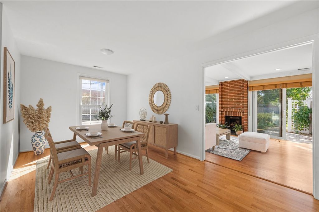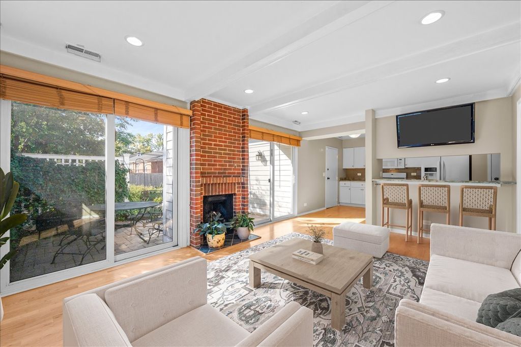 As an end unit, this Pebblecreek townhome gives you more--more windows, more privacy, more ways to gather--plus a true, separate dining room and a little green space all your own along the side. Inside, first-floor hardwoods set a warm tone. The kitchen and family room form the hub with breakfast-bar seating and a fireplace, then open through two sets of patio doors to a private patio perfect for dinner under the lights, a firepit hang, or a quiet lounge set. A convenient powder room serves the main level, and the attached one-car garage simplifies life. Upstairs, the primary suite includes an attached bath; two additional bedrooms are served by a full hall bath, and a laundry closet with washer and dryer is right where you need it-on the bedroom level. Because it's an end unit, you'll enjoy added natural light and extra privacy, plus a grassy side area with a small garden for play, pets, or herbs. In Pebblecreek's landscaped, pool community with professional management, you're close to shops, dining, and transit-in District 34 and 225.