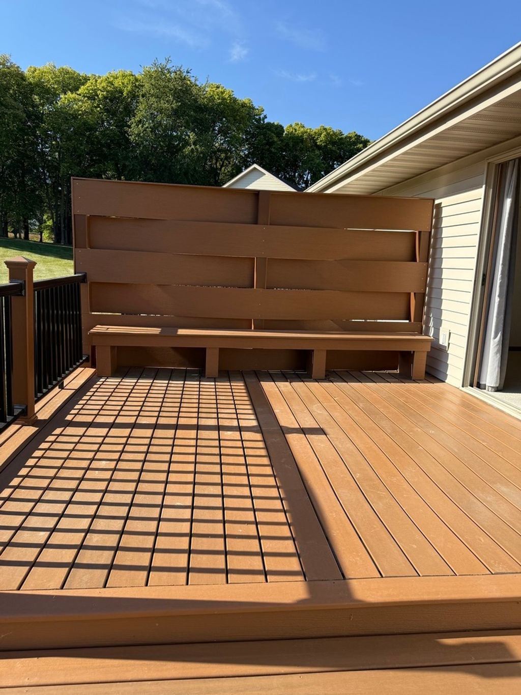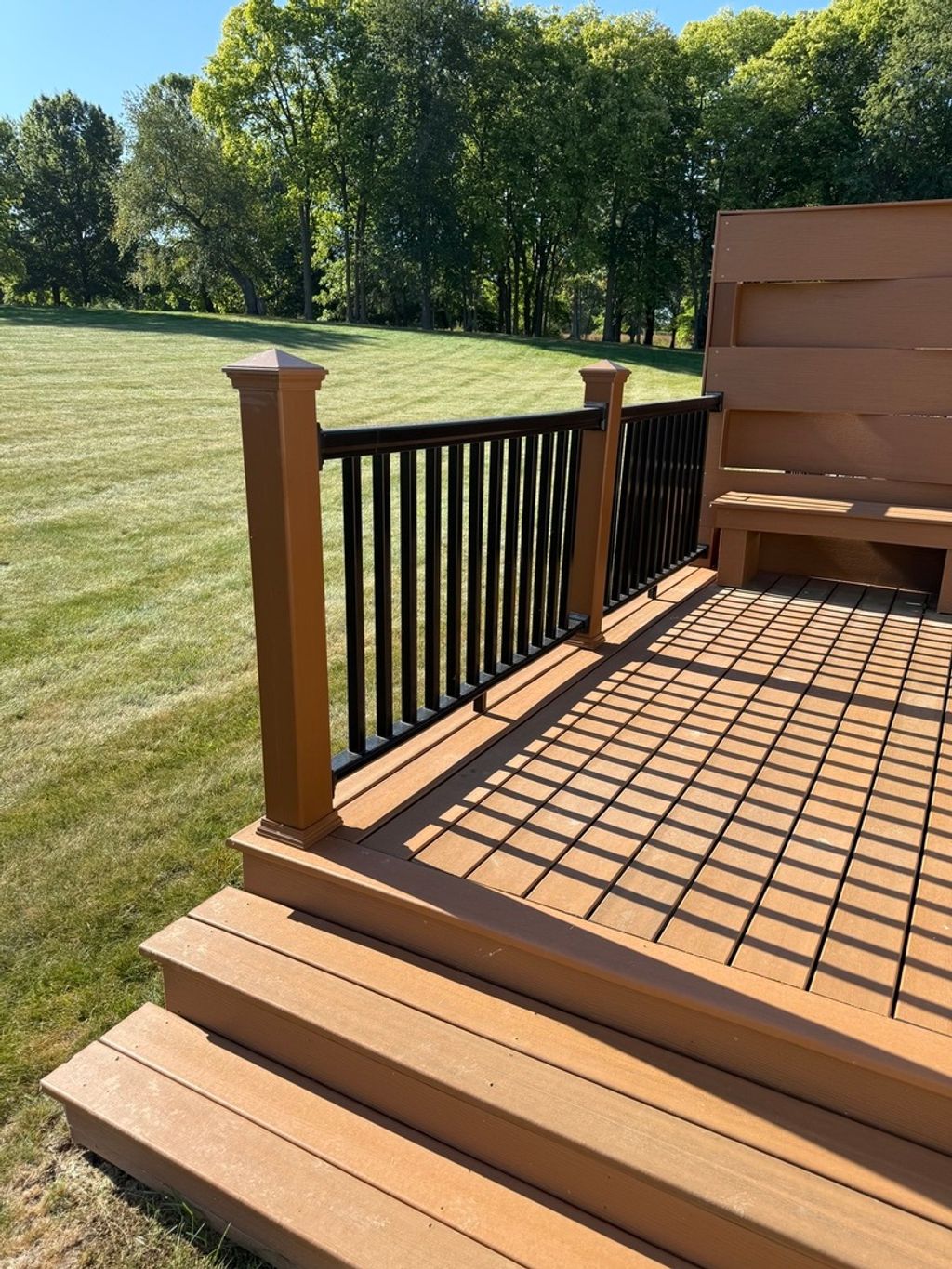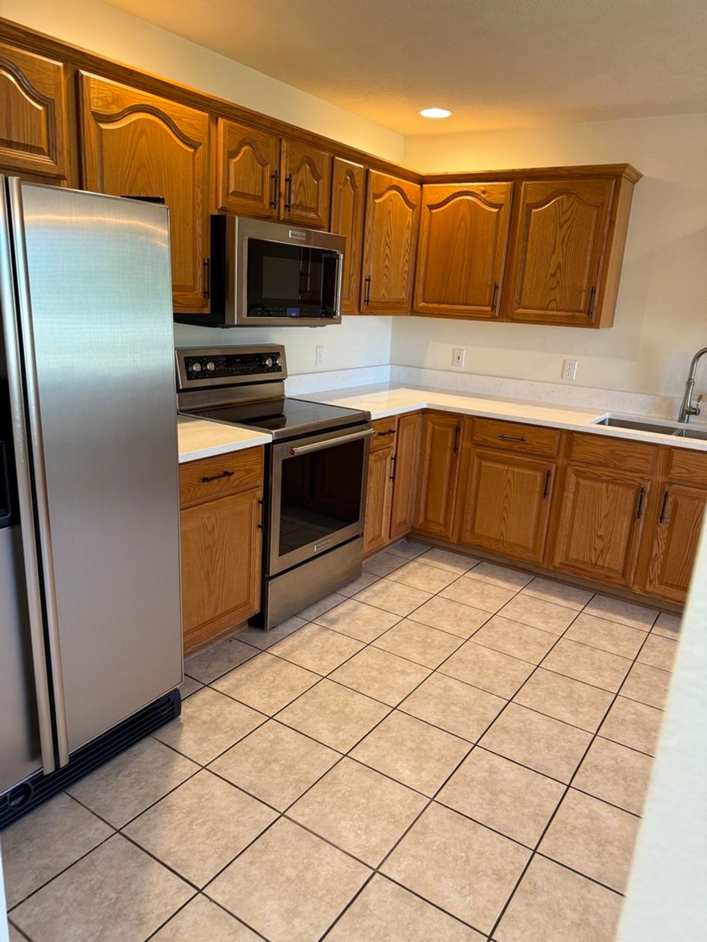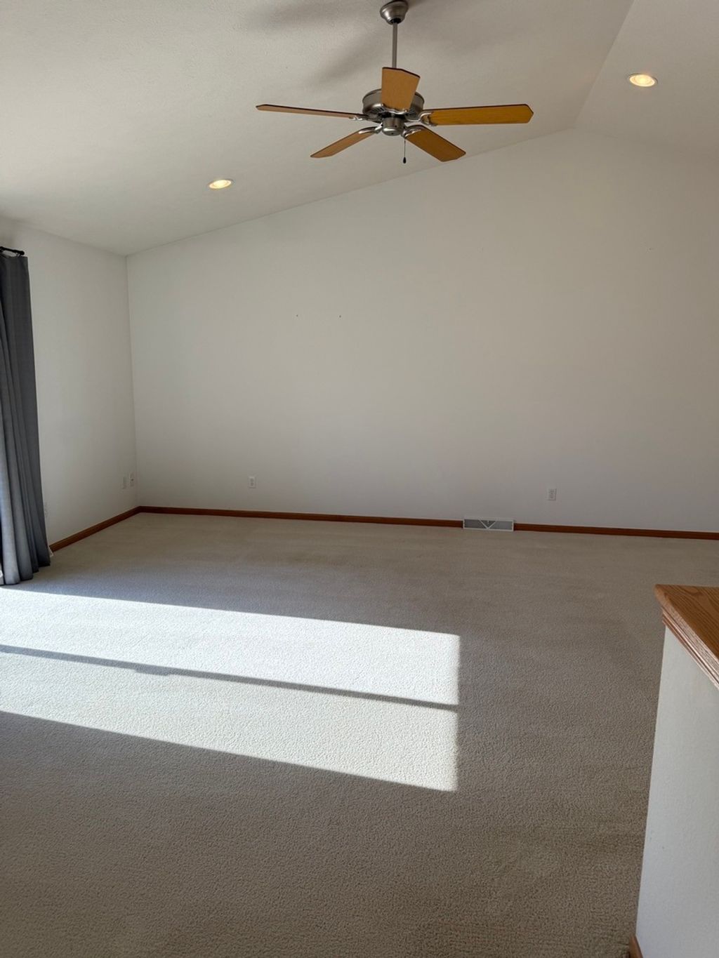 This Ranch Condo has an open concept with Cathedral Ceiling in the Living Room and Dining Area. Gas fireplace in Living Room. Large Kitchen with an eat in area. Plenty of cabinets with quartz countertops. Main floor laundry room. Primary bedroom with a large walk in closet and Primary bathroom. 2nd bedroom with main floor bathroom . Patio doors lead out to a new trex deck and off the deck onto a concrete patio. Unfinished basement with a potential to make extra living space and with plenty of space. Plumb in for a 3 bathroom. 2 stall garage.