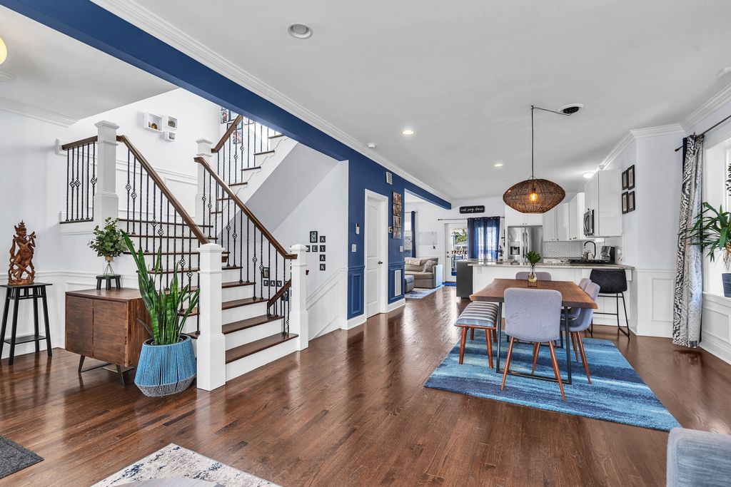 Welcome to this beautifully updated 4 bedroom 4 bath home in Belmont Cragin, fully renovated in 2017 and truly move in ready. The open concept main floor features a chef's kitchen with granite countertops, 42 inch cabinets, a spacious island, and stainless steel appliances, perfect for cooking and entertaining. Enjoy gatherings in the elegant dining room and inviting living room with custom staircase, wainscoting, and hardwood floors throughout. Upstairs, the private primary suite boasts a luxury bath and custom Container Store closet, while three additional full baths provide convenience for family and guests. The finished lower level offers flexible space for a media room, gym, or playroom plus an extra bedroom or office. Step outside to a landscaped fenced yard with deck and a 2 car garage with oversized door. Major updates include new roof, HVAC, water heater, and appliances from 2017 to 2019, along with modern comforts like a Nest thermostat and security system. All this in a vibrant neighborhood close to parks, restaurants, coffee shops, and more-don't miss the chance to call this home.