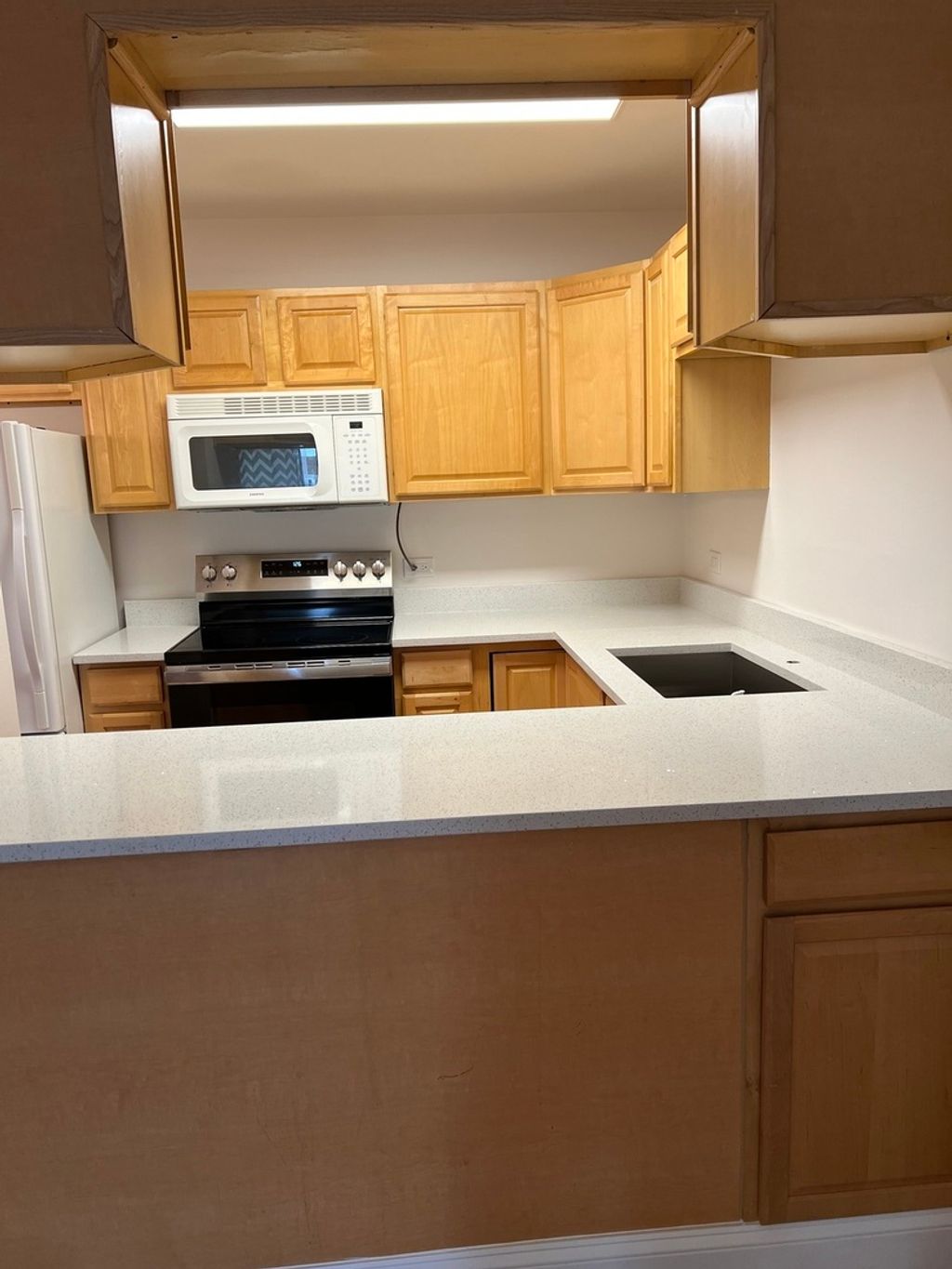 Lovely 1st Fl Condo w/courtyard view. Easy walk to train & park. New paint, new quartz counter top. New kitchen sink and faucet. 2 large walk-in closets. Slider to 10x10 covered patio.New lights in DR, hallway and kitchen. Deeded covered parking space #24. Coin laundry+Storage in basement. Assmt incl heat H2O. Investors Welcome!
