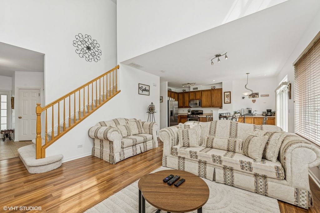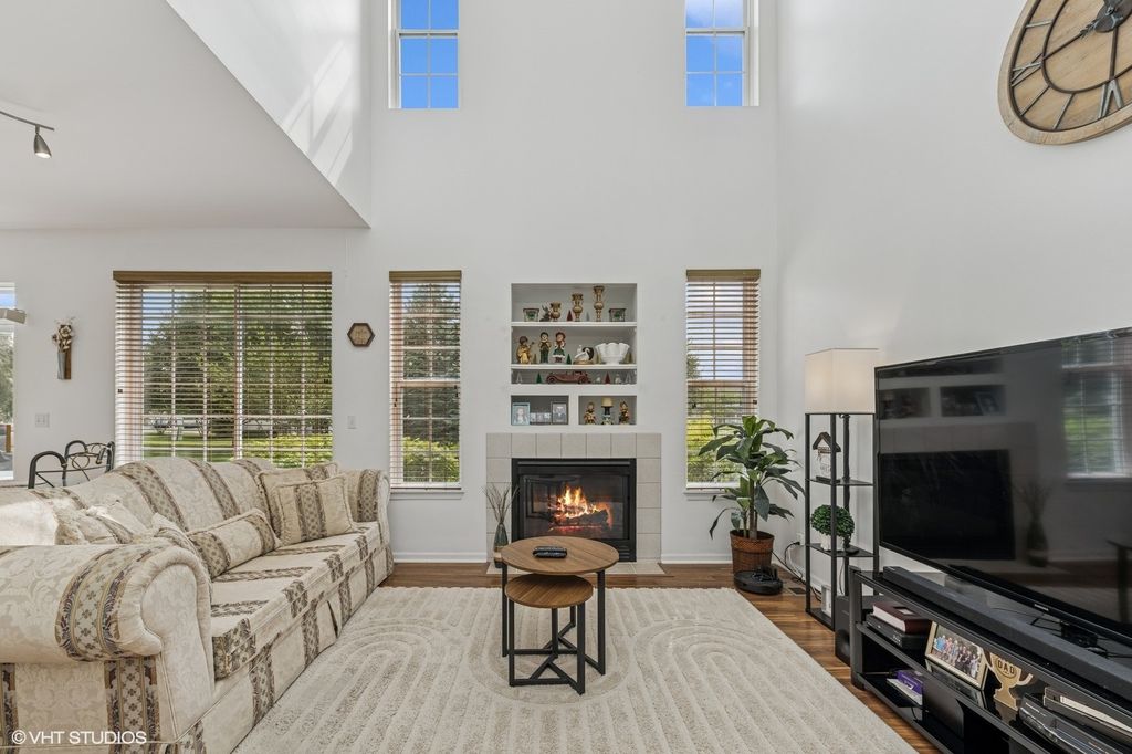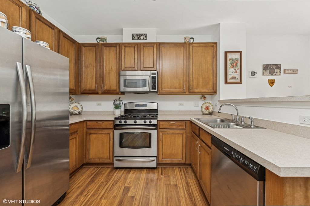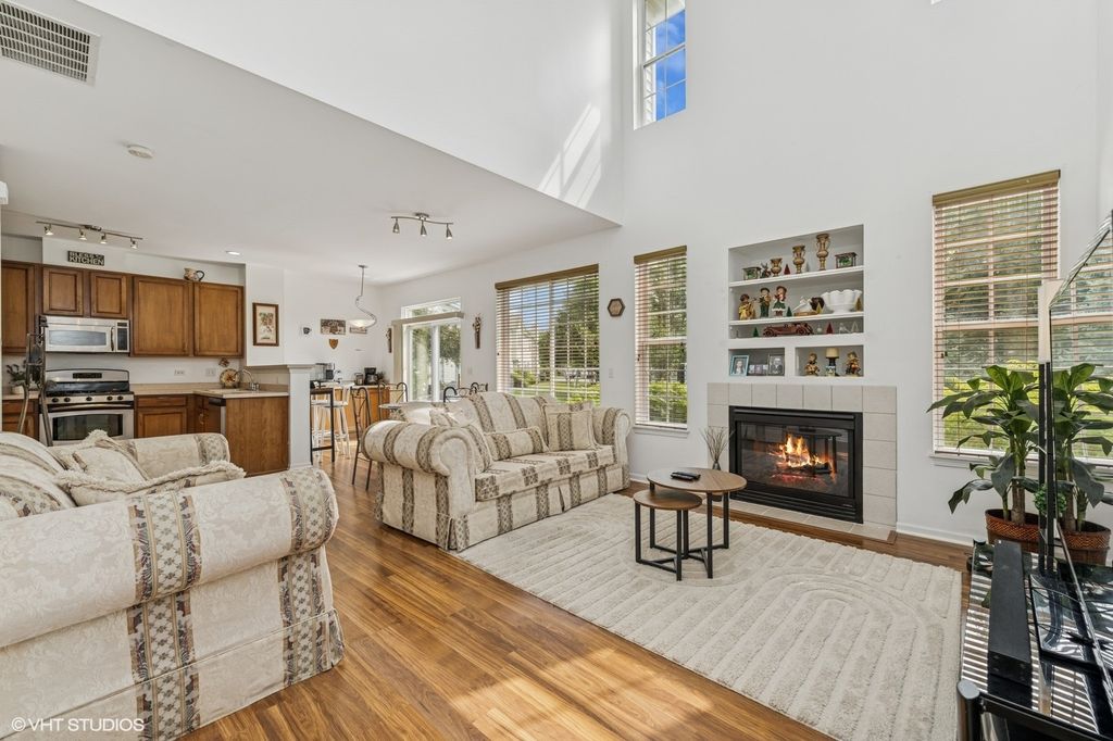 Prime location! This light-filled townhome is tucked away in a quiet spot with a long list of nearby amenities and activities. Easy access to Sunset Park (concerts, Ribfest, skate park, splashpads), Huntley schools Reed Rd campus, Northwestern Hospital's fitness center and pool, Randall Rd shopping and restaurants, and a 10-acre dog park-all just minutes away. Inside, enjoy a bright two-story living room with fireplace, a spacious eat-in kitchen with stainless appliances, pantry, and coffee bar/buffet with additional storage. Upstairs, the primary suite offers a remodeled en-suite bath, walk-in closet, and versatile sitting room, ideal for office space, nursery, or reading nook. Both bedrooms have walk-in closets, plus convenient second-floor laundry. Relax outdoors on your private-feeling patio surrounded by mature landscaping. Guest parking nearby makes hosting easy. Low HOA fees help make this one affordable townhome living at its finest-come see it today!