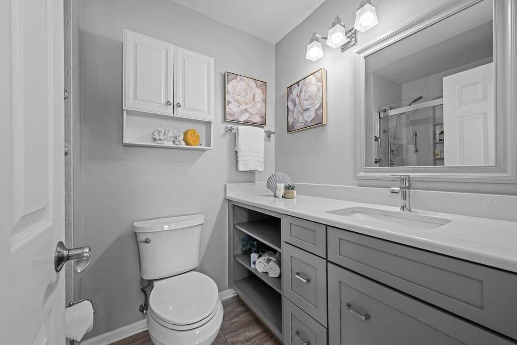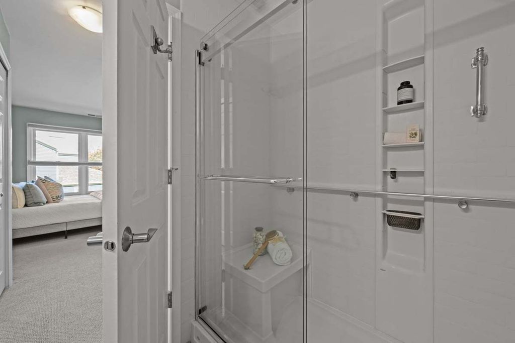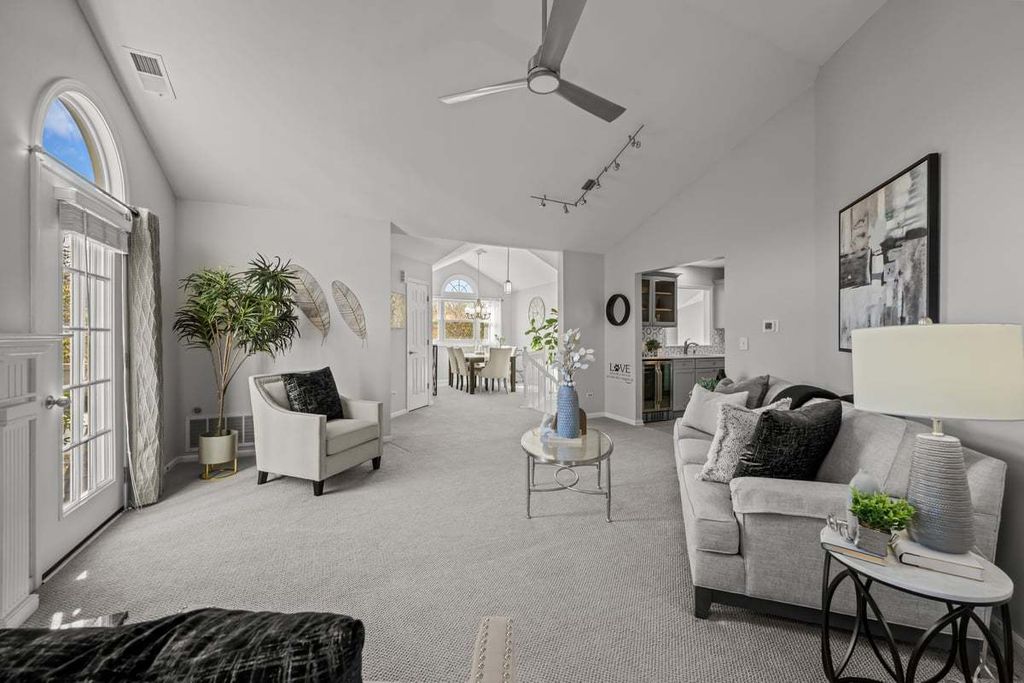 This second story end unit ranch nestled among the trees is the second largest unit in the Villas. Located on an interior lot, this home is bright, sunny and completely updated! A killer kitchen remodel in 2022 complete with stainless appliances, quartz counters, under cabinet lighting, new cabinetry, a walk in pantry and a beverage fridge. Updated baths, fireplace surround with gas logs, all new doors and windows in 2020, water heater in 2022, new garage door and GE washer and dryer in 2025. Carpets have been professionally cleaned. HVAC in 2016. Attached one car garage with built in storage. Close to downtown Naperville, Springbrook Prairie Path, shopping, restaurants, and located within school district 204.