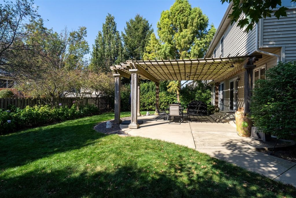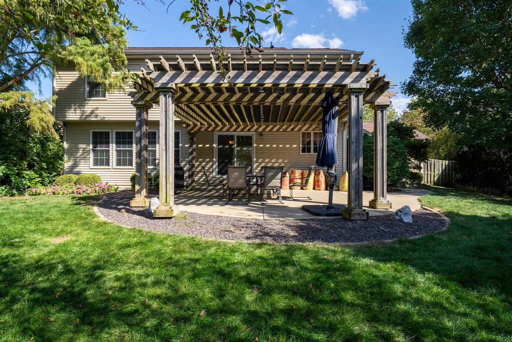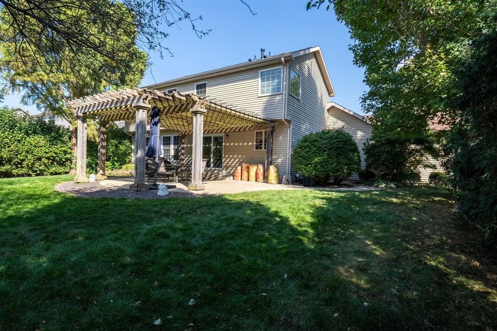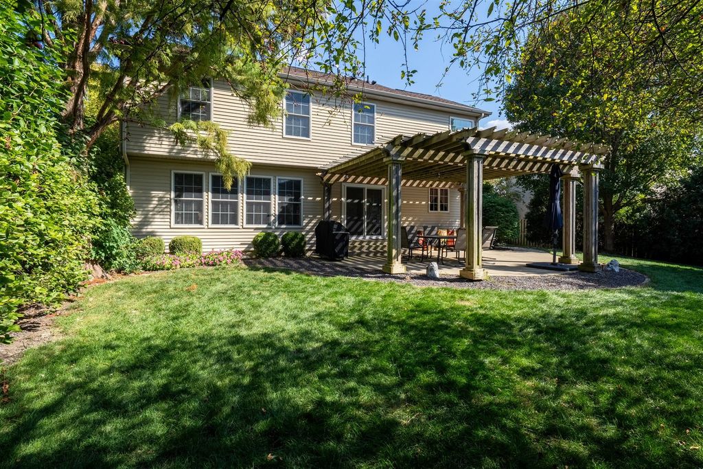 Welcome to this impressive home in sought-after Wintergreen! Inside, you'll find a flowing floorplan designed for both everyday living and entertaining. The kitchen features granite countertops, stainless steel appliances, pantry and a casual dining area that opens directly to the family room with fireplace. A formal dining room and additional living room provide even more options for gatherings. Upstairs, the four spacious bedrooms include a private primary suite with French doors, tray ceiling, an oversized walk-in closet, and a luxurious bath with soaking tub and separate shower. The finished basement extends your living space with a theater area and a tiled kitchenette complete with breakfast bar, sink, generous cabinet space, and a full-size stainless refrigerator. A fifth bedroom and full bath make the lower level perfect for guests or extended stays. Step outside to enjoy the beautifully landscaped yard, complete with irrigation system, custom patio, pergola, and professionally designed lighting that creates an inviting setting day or night. A three-car garage rounds out this exceptional property. Thoughtfully updated throughout, this home offers peace of mind with a new roof (2024), furnace and AC (2022), front and sliding doors (2022 & 2025), water heater (2023), sump pump (2021), bathroom fans (2024), water descaler system (2024), and washer and dryer (2020).