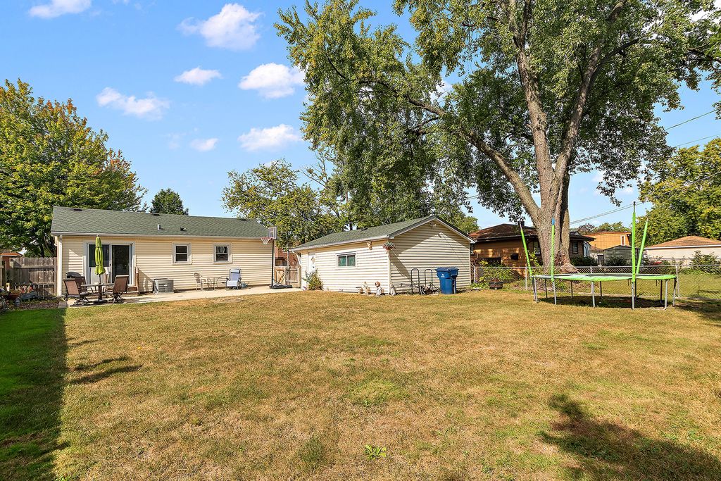 Charming 2-bedroom, 1-bathroom RANCH home, meticulously maintained in a peaceful Chicago Ridge neighborhood, offering over 900 square feet of living space on a spacious lot. This home features a recently updated kitchen with stainless appliances, white cabinetry and granite countertops. Cozy bedrooms with ample closet space. Built on crawl space. Long driveway to detached 2-car garage and generous fenced backyard, perfect for entertaining or gardening. Concrete patio spans the entire back of home. Walkable to Chicago Ridge Public Library and Freedom Park with splash pad. Ideally located near schools, parks, and Chicago Ridge Mall for shopping/dining, this property is perfect for first-time buyers, down-sizers, or investors seeking a solid home in a desirable area. Big ticket items include newer roof, windows, electric, sewer line, sidewalk and driveways. "As Is" sale. This is low maintenance and the perfect place to start of finish your story!