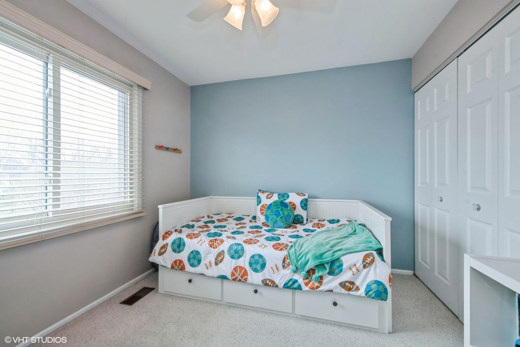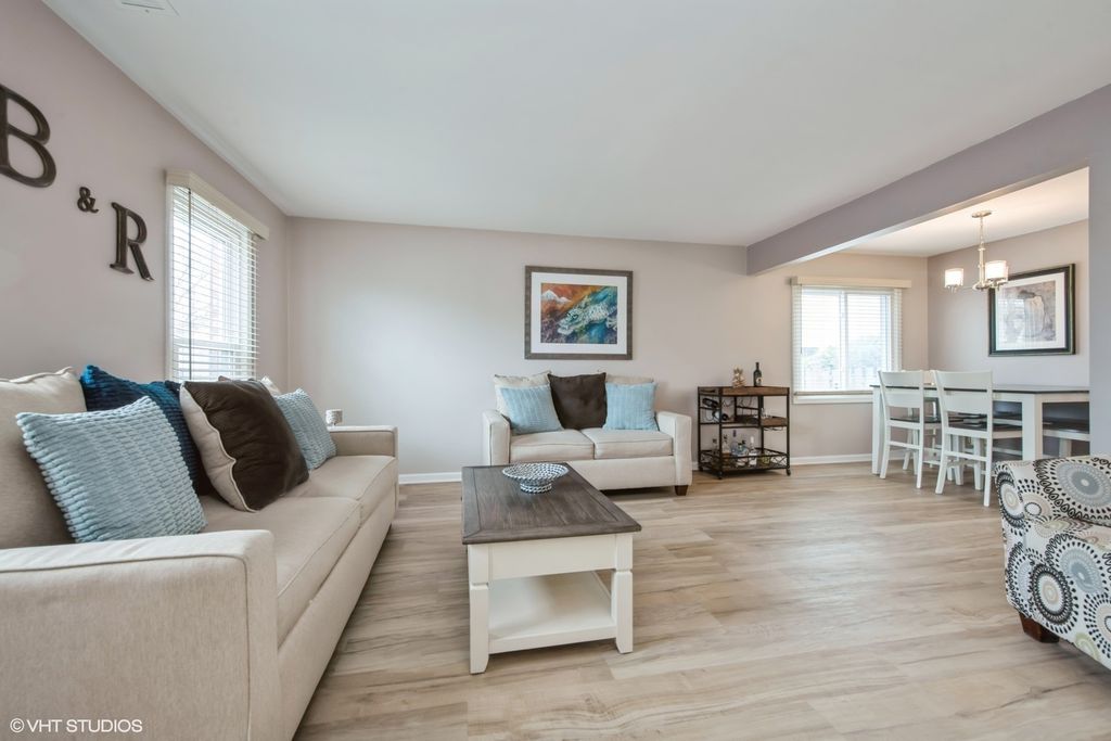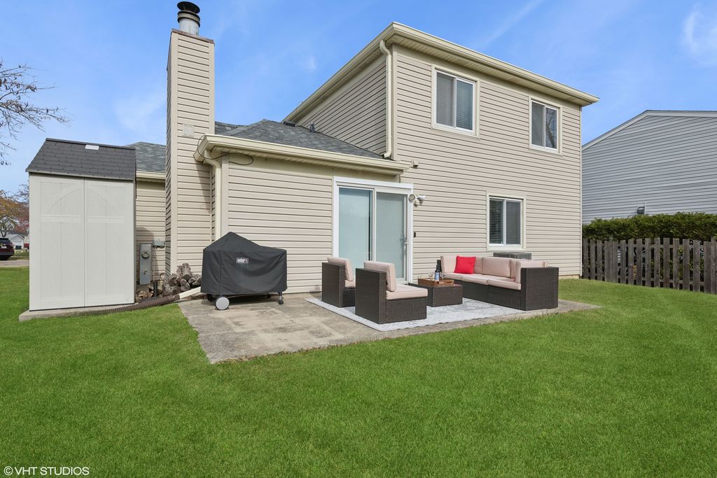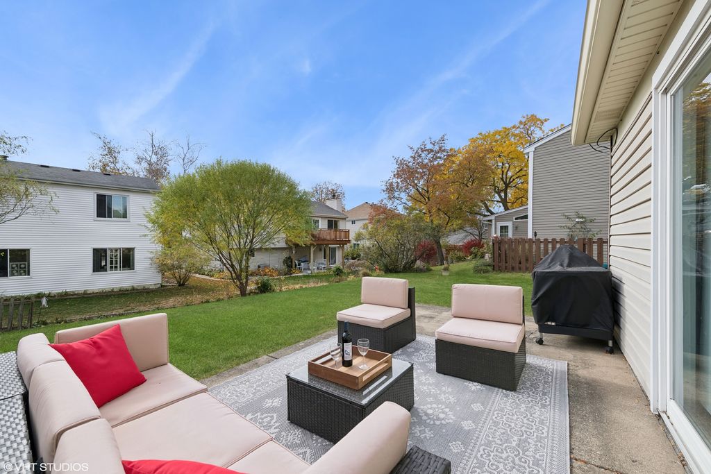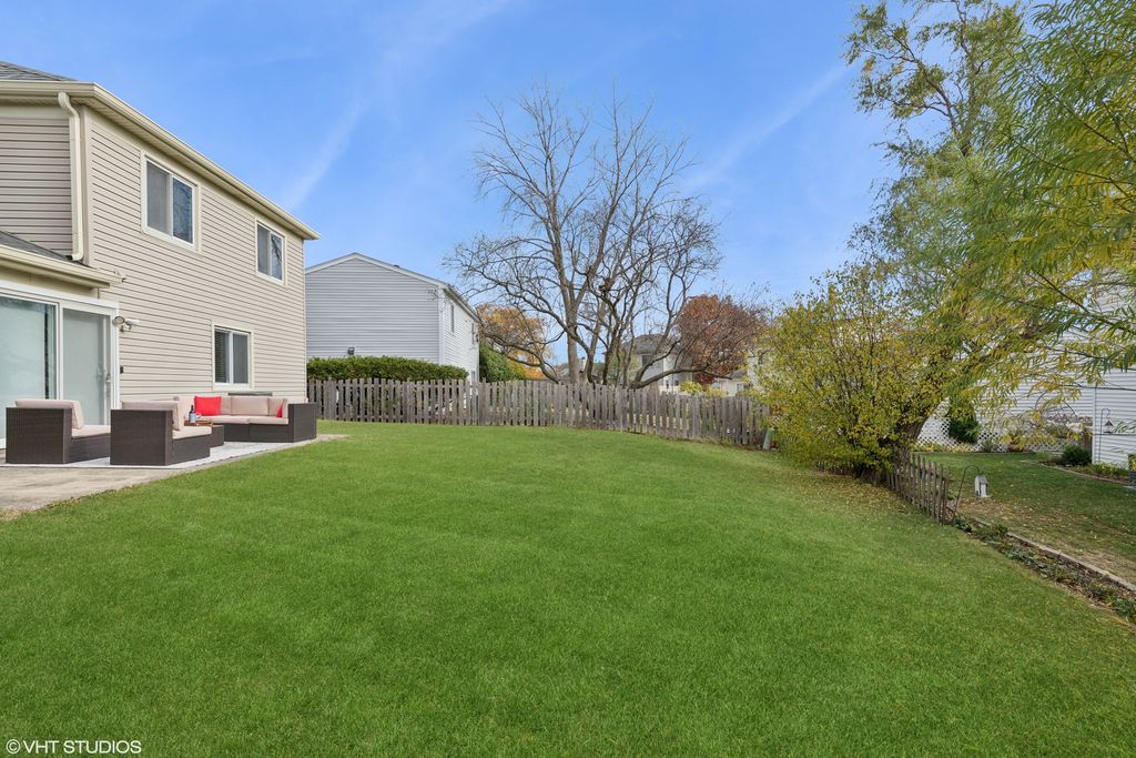 Welcome to this stunning, move-in-ready home with a perfect blend of style and comfort. Gorgeous new LPV flooring greets you as you enter the sunlit living room, creating a warm and inviting space. The connected dining room flows seamlessly into a beautiful kitchen featuring white cabinetry, stainless steel appliances, and ample counter space-perfect for any chef. The kitchen opens to a cozy family room complete with a fireplace and custom built-ins, ideal for relaxing or entertaining. From here, step out into the private backyard, a wonderful space for outdoor gatherings, grilling, or simply enjoying peaceful moments with friends and family. Upstairs, the spacious primary suite offers large closets and an updated en suite bathroom. Two additional bedrooms share a beautifully updated hall bath, providing comfort and style for everyone. The home also includes a large 2-car garage with room for additional storage. Enjoy peace of mind with NEW ROOF & HVAC 2023, Updated all Baths and new LPV Flooring 2024, NEW Washer/Dryer 2021-truly making this a move-in-ready gem! Located in the award-winning Marion Jordan, Thomas Jefferson, and Fremd High School districts, this home is a short walk to several parks, Jewel, Starbucks, Subway, Lou Malnati's, and more. Don't miss this opportunity to live in a prime location close to shopping, dining, and top-rated schools!