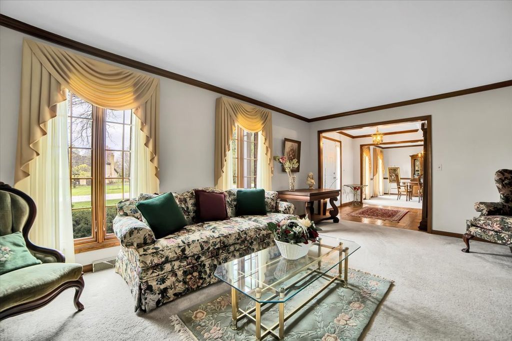 Welcome to this impeccably maintained two-story, all brick residence nestled on a 1-acre lot in the sought-after Woods of Cantigny! This one-owner home offers thoughtfully designed living spaces. Inside, you will find a classic layout featuring a formal living and dining room, a generous family room with fireplace and beamed ceiling, crown molding, large eat-in kitchen, home office or den and 1/2 bath. Upstairs you will find 4 spacious bedrooms, tray ceiling in master bedroom and 2 full bathrooms. A full unfinished 1,600 square foot basement offers endless potential for customization. Outdoors, the expansive lot and deck offer plenty of room to garden, entertain, or simply enjoy the natural beauty. This property borders land owned by the Diocese of Joliet, offering a private backdrop of open cornfields. Enjoy the rare blend of peaceful privacy with suburban convenience. Located near I-88, Winfield Metra, Cantigny Park, Cantigny Golf, Blackwell Forest Preserve and top-rated schools, this is a rare opportunity to own a home in one of Winfield's most desirable neighborhoods. Updates: New 1,500-gallon septic tank due for installation October 2025; sump pump, ejector pump and back-up replaced in 2024; new furnace December 2022.
