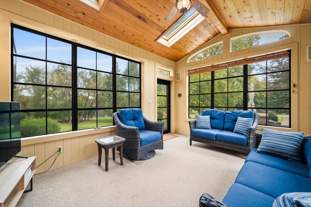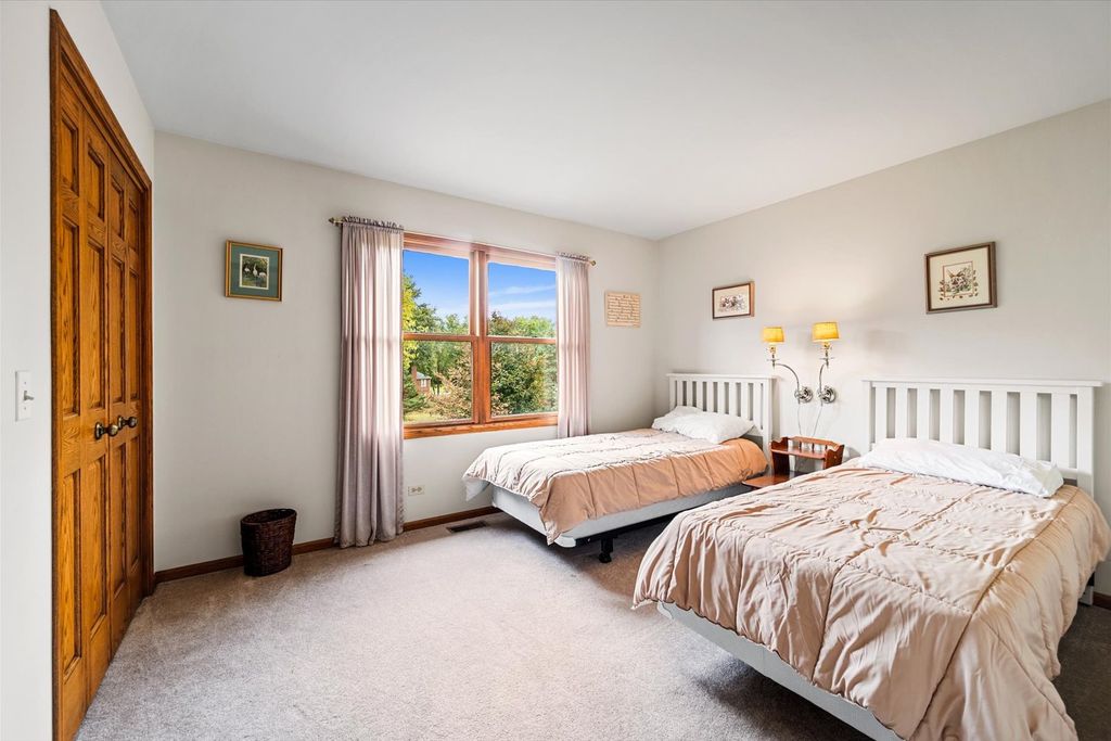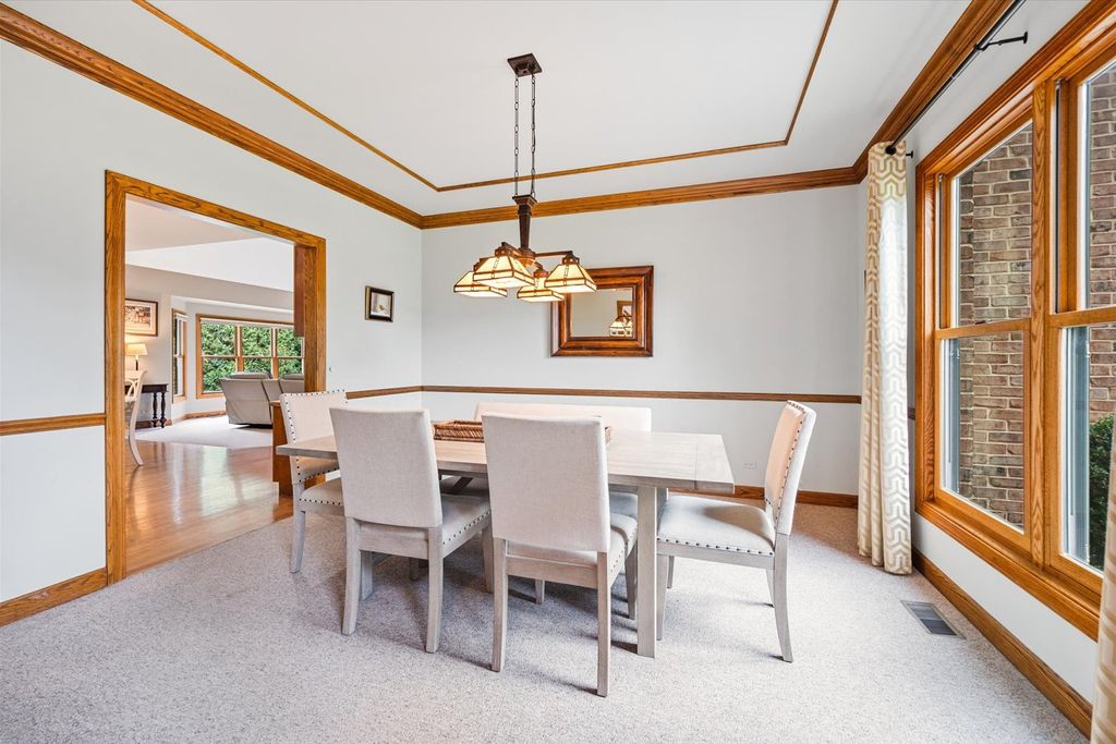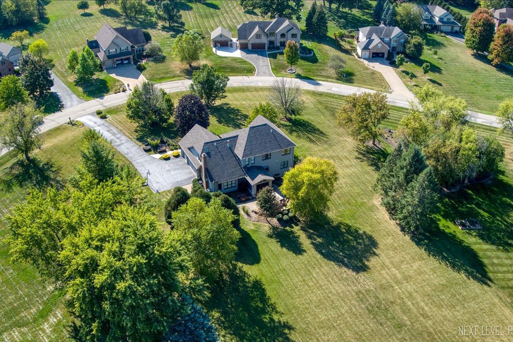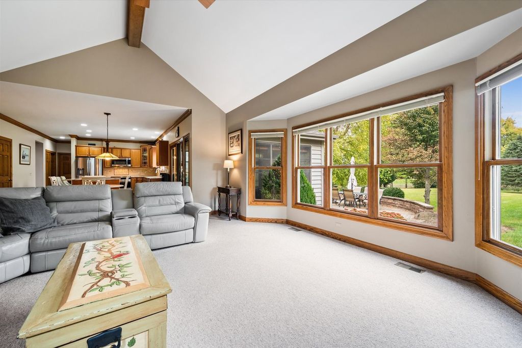 Stately brick-front home on a private lot with a deep backyard and gorgeous paver patio in an exclusive private enclave of Deer Run! Step inside the 2-story foyer with oak hardwood floors and crown molding that flow through to the kitchen. The spacious living room features pocket French doors and crown molding, while the formal dining room offers a chair rail, crown molding, custom recessed ceiling, and a wood-cased opening to the kitchen. The chef's kitchen impresses with 42" hickory cabinetry w/crown trim, granite countertops, stainless steel appliances, breakfast bar/island, pantry closet, planning desk, recessed lighting, and a bright eating area with slider to the patio. The family room has a vaulted beamed ceiling, floor-to-ceiling brick fireplace, and a big bay window overlooking the yard. A main-floor den or 5th bedroom with French doors and adjacent powder room makes a perfect guest suite. The large laundry/mudroom includes a sink, storage closets, and access to the garage and side yard. The highlight of the main floor is the 3-season sunroom with vaulted tongue-and-groove ceiling, walls of adjustable windows, skylights, panoramic views, and patio access. Upstairs, the primary suite boasts a tray ceiling, sitting area, two walk-in closets (one is 28x8!), and a luxury bath with vaulted ceiling, skylight, dual sink granite top vanity, corner whirlpool tub, and separate shower. Three generous secondary bedrooms-one with a vaulted ceiling-share a hall bath with dual sink granite top vanity and tub/shower combo. The full walk-out basement offers endless possibilities for future finishing. 3-car side-load garage, custom paver walkway, and paver patio offering beautiful outdoor entertaining space complete the package. Ideally located just minutes from downtown St. Charles and Randall Road shopping and dining! Come and take a look!