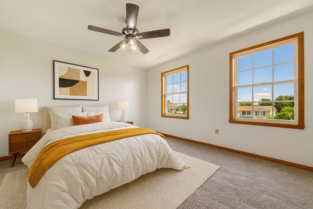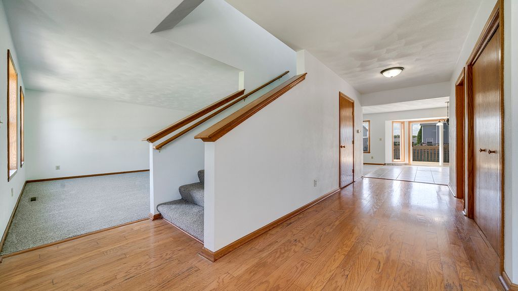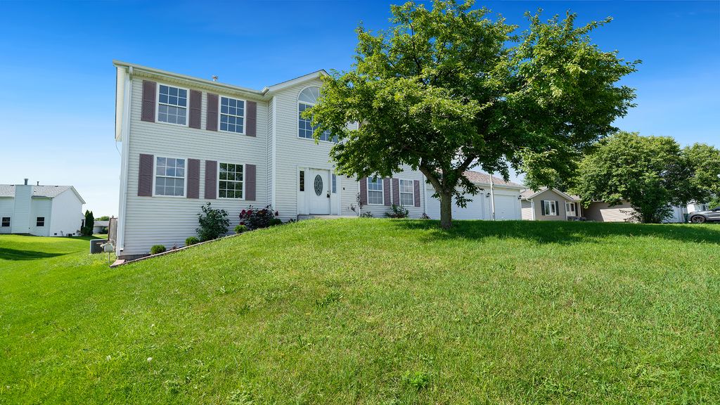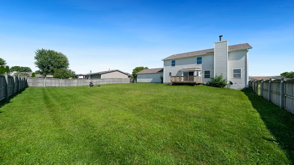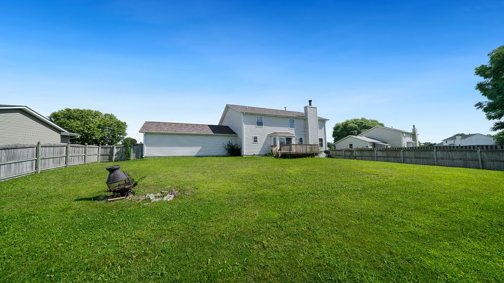 **Some listing photos have been virtually staged with furniture and decor. These renderings are for illustrative purposes only to help visualize the space.** Welcome to this spacious two-story home designed for comfort and style. The entryway features beautiful hardwood floors, leading to a formal living room and dining room. The kitchen offers abundant cupboard and counter space, plus an informal dining area large enough for gatherings, with sliding doors opening to a deck and fenced backyard. The kitchen overlooks the cozy family room, complete with a fireplace framed by two windows. Convenient first-floor laundry and a half bath add practicality. Upstairs, you'll find four bedrooms and two full baths, including a primary suite with a private ensuite and walk-in closet. The unfinished lower level provides potential for future living space. Recent updates include fresh paint throughout, new carpet, water heater (2021), newer A/C, and a roof installed five years ago. A three-car attached garage completes this well-maintained home.