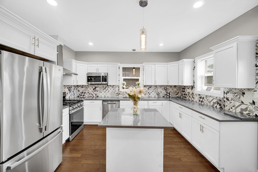 Originally renovated in 2022, this brick home was expanded with a full second-story addition, creating a true two-level layout with room to spread out. The main floor offers a flowing layout that connects the living and dining areas, leading into a sleek, updated kitchen with stainless steel appliances and ample prep space. Upstairs, you'll find three well-sized bedrooms, including a generous primary with vaulted ceilings, a walk-in closet, and a private bath featuring a soaking tub and separate shower. The lower level includes two more bedrooms, a full bath, and a cozy family room with its own entrance - ideal for guests or additional privacy. Out back, there's a fenced yard and a 2-car carport tucked behind a sliding gate. Conveniently located near major roads, transit, parks, and neighborhood favorites.