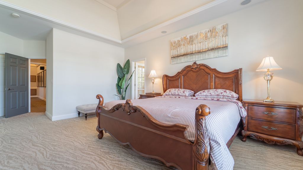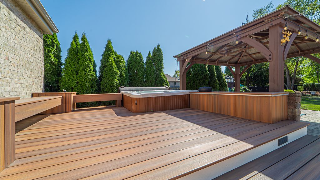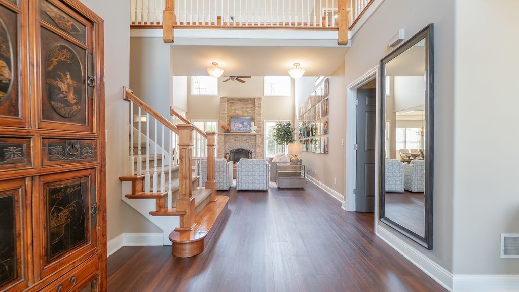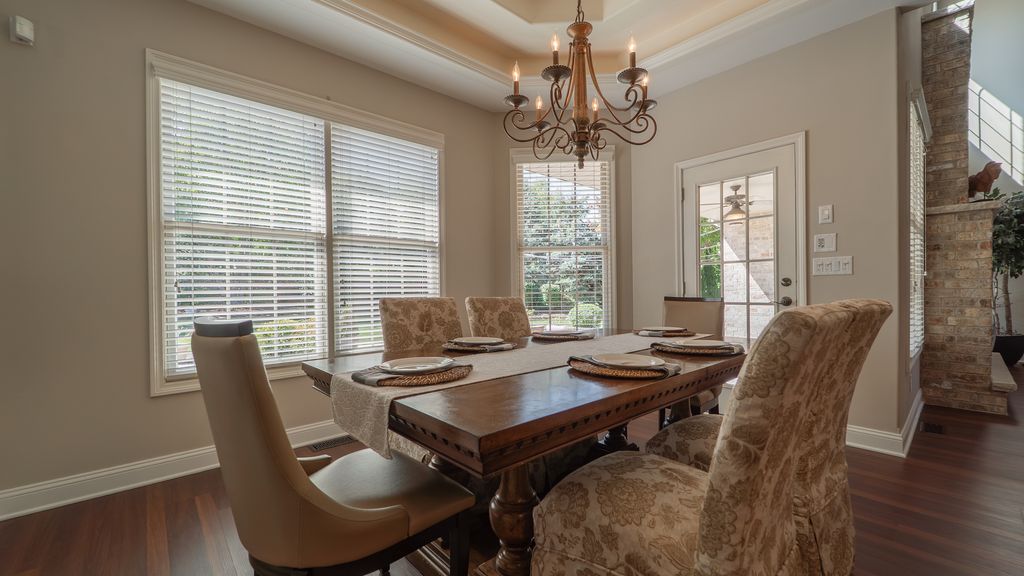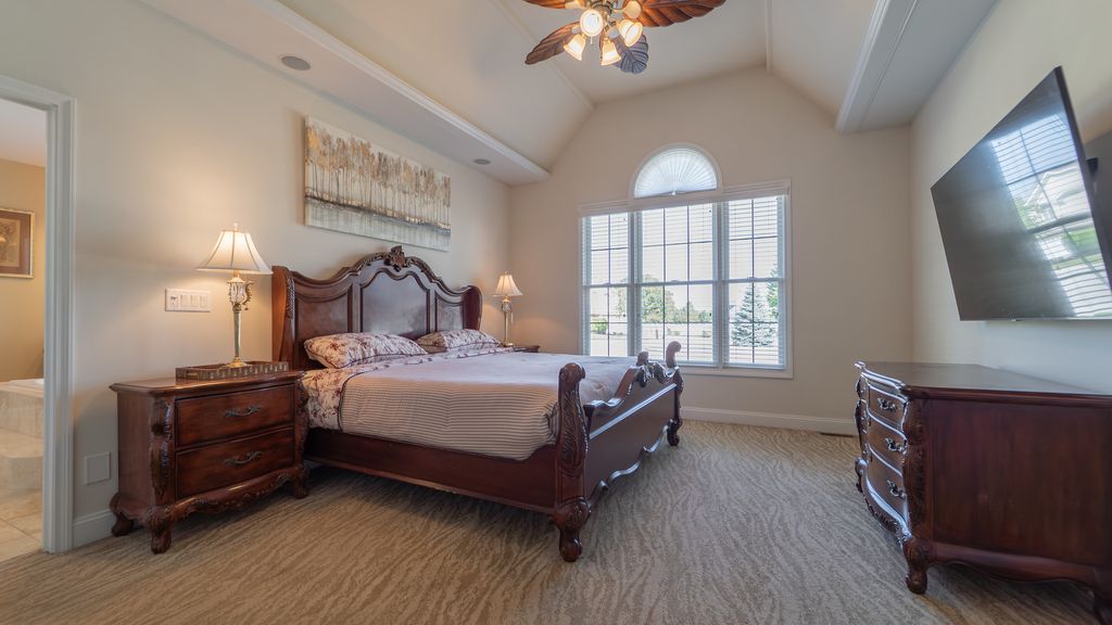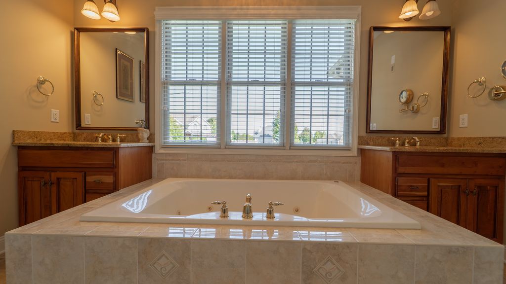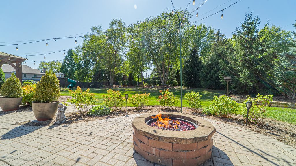 Welcome to Bordeaux Estates. This stunning French country inspired home offers 3,147sf of thoughtful living space on a beautifully landscaped 3/4-acre cul-de-sac lot in one of Bourbonnais' most prestigious neighborhoods. Step inside the impressive two story foyer with a dramatic catwalk overlooking the family room. A versatile front living room makes the perfect conversation area, study, or private home office. The spacious family room boasts soaring ceilings, a cozy brick fireplace, and walls of windows that flood the space with natural light. The gourmet maple kitchen is complete with granite countertops, newer stainless steel appliances, breakfast bar, and a sunny dining nook. Just off the kitchen, the main-floor master suite provides a luxurious retreat with two walk-in closets, whirlpool tub, oversized shower, dual sinks, and private water closet. Also on the main level you'll find a custom home theater (with flexibility to serve as a guest suite, gym, or rec room). Main floor also features a well appointed laundry room with sink, built-ins, and even space for a full refrigerator. Upstairs, three additional bedrooms, two full baths, and a walk in attic are connected by the dramatic catwalk, providing both function and flair. The full basement offers endless possibilities with 10 foot foundation walls, bathroom rough-in, and radiant floor heat already roughed in. Outside, enjoy your private backyard oasis: a covered patio plus an expansive brick paver patio with gas firepit, composite deck leading to the hot tub, and pergola tucked among lush landscaping designed for maximum privacy. Perfect for entertaining or quiet evenings at home. Additional highlights include: Side load 3 car garage with extended driveway, Roof in 2018, recently updated furnace and A/C. Premium cul-de-sac location with mature trees and a neighborhood known for prestige and tranquility. This Bordeaux Estates beauty blends elegance, comfort, and versatility, making it the perfect forever home.
