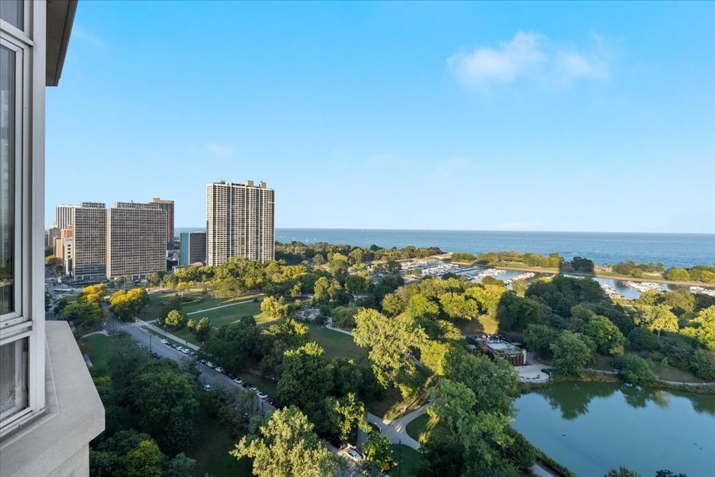 Welcome to this remarkable residence perched high atop the prestigious and rarely available 2550 Lakeview-Lincoln Park's most coveted address. Here, bespoke updates blend seamlessly with timeless elegance to create a home like no other. A beautiful panorama of the City skyline, Lake, lagoon, and Lincoln Park, with front-row views from your private east-facing balcony await. No detail has been overlooked. Custom millwork, curated lighting, and luxurious finishes elevate every space. Enjoy entertaining from your elegantly renovated kitchen complete with high-end cabinetry, full height slab backsplash and countertop with waterfall edge, and chef grade appliances. The open floor plan invites the Lake indoors, anchored by a striking bay window framing the view. Retreat to your primary suite, where a spa-inspired bath awaits with a deep soaking tub, beautifully crafted custom tilework, and dual walk-in closets and direct access to the balcony. Two additional bedrooms with en-suite baths offer the perfect blend of comfort and sophistication-ideal for family, guests, or a private office. Expansive western views provide a beautiful backdrop, filling the rooms with warm afternoon light. Nearby, a well-appointed powder room and a discreet laundry closet add everyday convenience. Unmatched luxury services and amenities include an indoor pool, sauna, whirlpool, state-of-the-art fitness center, club room, billiards room, theater, game room, dog run, paw wash plus a 1.25-acre private park! Valet guest parking, 24 hr. doorman! 1 deeded tandem parking space available. Outstanding property in Lincoln Park's finest building!