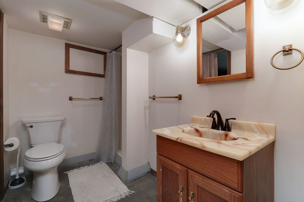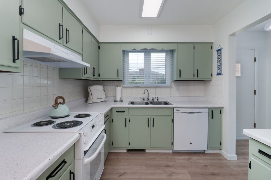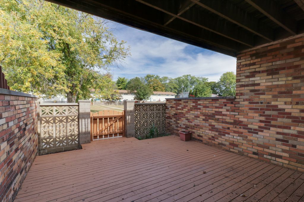Welcome to this beautifully updated first-floor condo in a prime location close to businesses, shopping, and restaurants. This one-bedroom, two-bath home offers convenience, comfort, and thoughtful improvements throughout. The spacious living room connects to an eat-in kitchen with a full appliance package to remain, including washer and dryer. Wood laminate flooring flows seamlessly throughout the first floor, creating a warm atmosphere. The basement offers additional space with a full bathroom, and outside you'll enjoy a nice-sized, partially covered back patio. A one-car detached garage is included, and the community pool is perfect for summer days. This home has been updated. In 2022, the first floor, including walls and ceilings, was painted; new wood laminate flooring, air vents, custom window coverings, smart thermostat, doorbell, lighting fixtures, bathroom vanity, mirror, lighting, smoke/CO2 detectors, garbage disposal, hood for range, and washer/dryer were installed, and the back faucet was repaired. In 2023, the back deck was painted, outdoor lighting with sensors was added, a new accordion door was installed to the basement bathroom, and the HOA replaced the front kitchen window. In 2024, all exterior doors and the garage were fitted with single-key locks, and a Ring alarm system was added. In 2025, all interior doors were painted with new hardware, kitchen cabinets were painted and refinished with new handles, countertops were refinished, the bathtub was resurfaced, a new sink fixture was installed in both the kitchen and basement bath, a new toilet was added downstairs, the range was replaced, the breaker box was upgraded, and new outdoor lighting was installed. The air conditioning and heating system have been regularly serviced professionally. HOA fees include access to the pool as well as exterior maintenance, lawn care, and snow removal. Property is being sold as-is.
