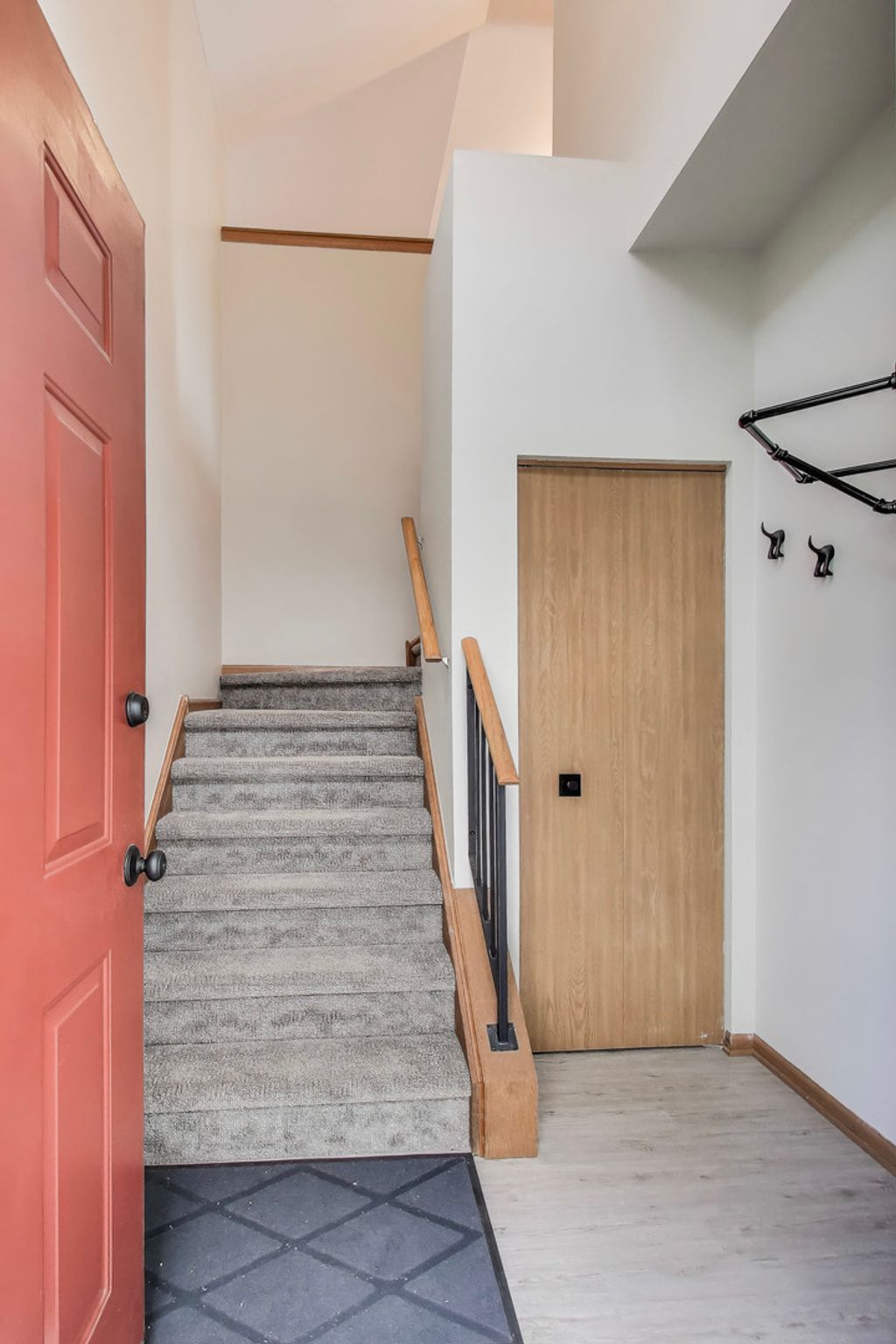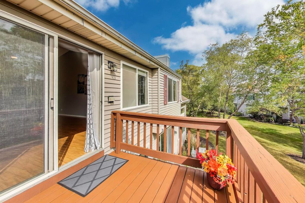 Great Location! Unique ranch style second level with interior staircase.This 2 bed 2 bath unit has cathedral ceilings, open floor plan, updated kitchen with granite counters and s/s appliances. beautiful flooring throughout with new carpet in the bedrooms, nice size laundry room, Den space could possibly be 3rd bedroom. Private balcony. Last two years New Carpet on stairs and both bedrooms, Luxury Vinyl plank flooring in entry, new appliances include high end fridge ,microwave, washer, dryer and under sink reverse osmosis system, all drapes, blinds and hardware included. New contemporary lighting installed along with celling fans with remotes. attached garage and additional driveway parking, convenient guest parking and pet friendly area for your dog.