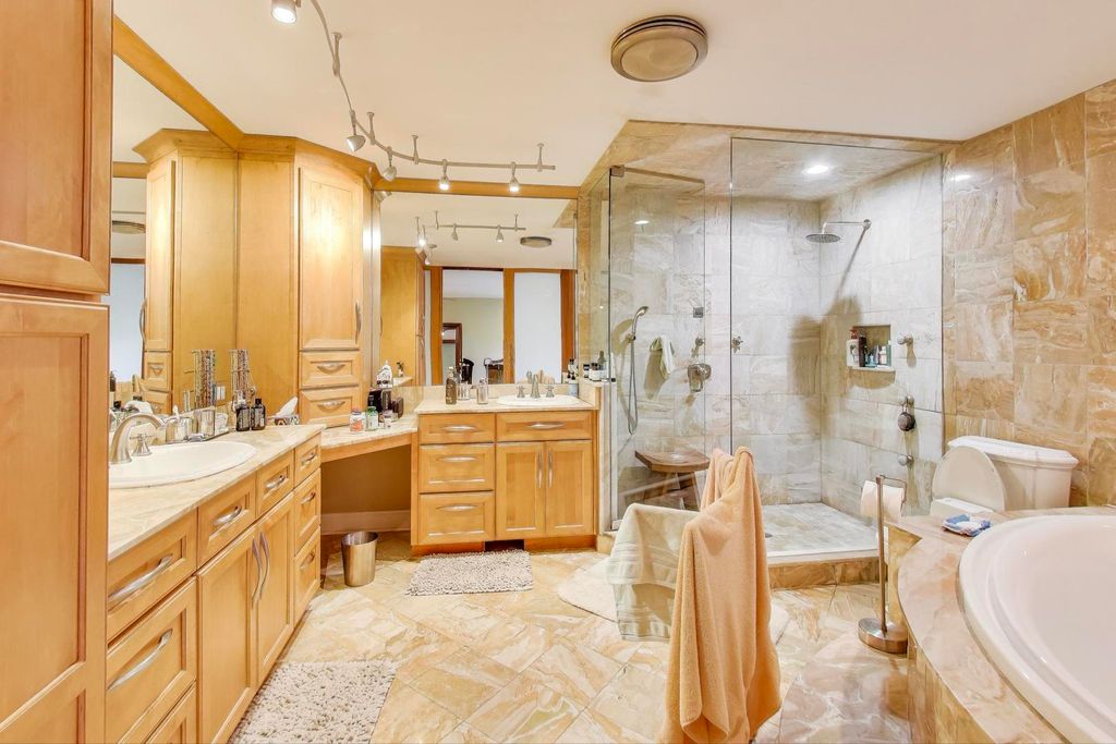 Stunningly updated, this spacious ranch in desirable Villa Salceda, has it all. Ideal for those downsizing or starting out-offering comfort, privacy, and sunlight throughout. A gracious foyer opens to the home's central atrium, the heart of this floor plan. The kitchen, dining, and family rooms flow seamlessly around the courtyard for effortless living and entertaining. Deluxe kitchen (2009) features 42" cherry cabinets, granite counters, breakfast island, soft-close drawers, and stainless appliances. Dining room can host any size gathering. Family room with marble-surround gas fireplace and cherry built-ins opens to brick patio and landscaped grounds. Expansive living room offers flexible space for multiple uses. Grand main suite with crown molding, skylight, walk-in closet, and marble bath with dual vanities, steam shower, and soaking tub. Second bedroom with custom built-ins and walk-in closet; hall bath includes laundry and skylight. Attached 2-car garage, deep dry partial basement with great storage, gravel crawl space, second laundry, and extra refrigerator. Prime location near train, shopping, dining, highways, downtown Northbrook, and The Glen.