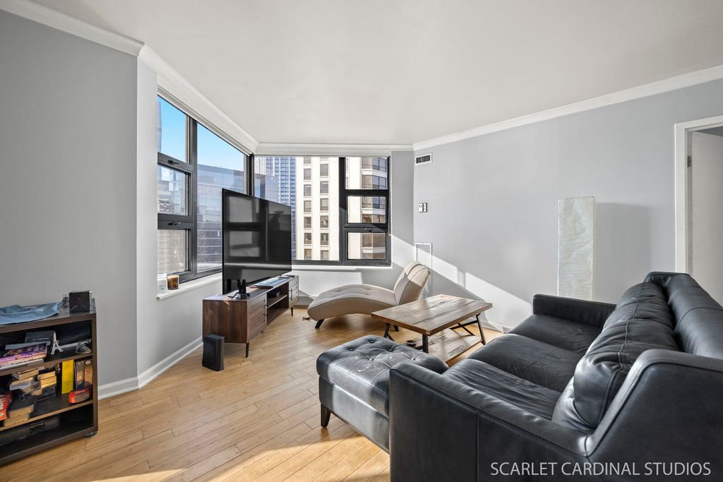 Enjoy breathtaking views of the city and Lake Michigan from this 44th floor condo located in the heart of Streeterville. This prime Near Northside location is conveniently situated near numerous attractions and amenities, such as the lakefront trail and beaches, Riverwalk, Navy Pier, Magnificent Mile, as well as dining options, shopping venues, Northwestern University and Hospital, parks, theaters, and much more! This sunlit, south-facing condo boasts an open floor plan, featuring a combined living and dining space with large windows offering beautiful views of the skyline and lakefront. The kitchen comes equipped with stainless steel appliances, granite countertops, mahogany cabinetry, and a custom wine rack. The bathroom has been upgraded, and there are two generous walk-in closets with custom organizers. An exceptionally well-maintained building with outstanding amenities, includes an indoor pool, sauna, hot tub, party room, gym, and two outdoor sundecks providing panoramic views, along with a 24-hour doorman. Commuters will appreciate the easy access to public transportation and expressways. The unit does not come with parking, but there are typically spaces available for lease in the building's parking garage.