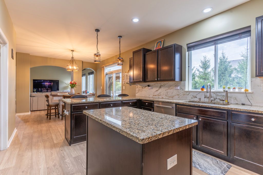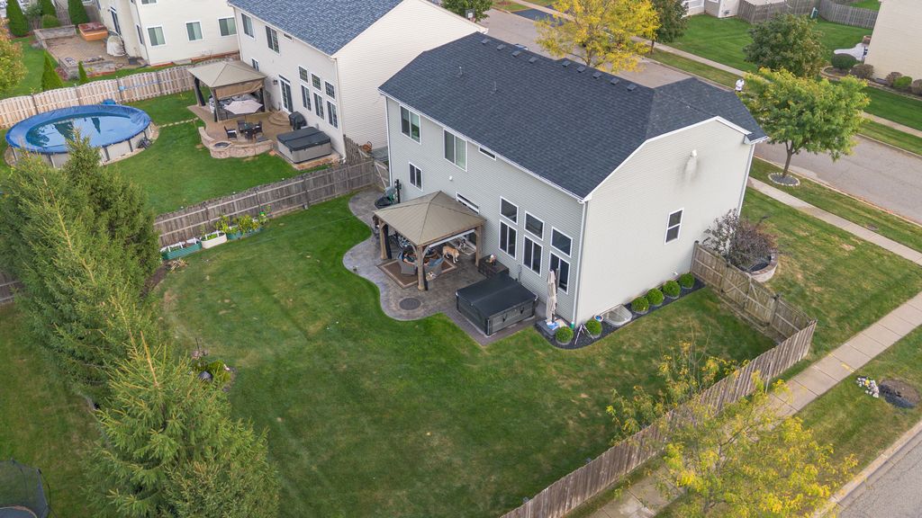 This striking brick exterior sets an impressive tone, while the professionally designed landscaping-with a pergola, stamped concrete patio, and lush vegetation-creates a private outdoor oasis. Step inside to a show-stopping two-story family room bathed in natural light, ideal for lively gatherings or cozy evenings at home. The chef-inspired kitchen is truly the heart of this home, featuring top-of-the-line KitchenAid stainless steel appliances, a spacious island with breakfast bar, and upgraded finishes throughout. Enjoy four generous bedrooms and two-and-a-half baths, providing comfortable space for everyone. New flooring flows seamlessly throughout the main level, creating a fresh, contemporary feel in every room. Retreat to the full basement-ready to be transformed into your future home theater, fitness studio, or the ultimate play space. This beautifully upgraded, move-in ready home offers a rare combination of luxury, comfort, and location. Don't miss your chance to live in a highly sought-after neighborhood-schedule your private tour today!