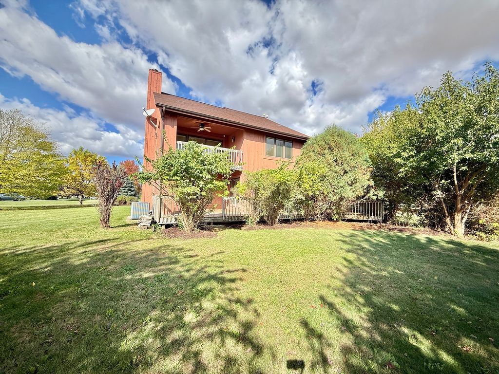 Nestled on a quiet cul-de-sac in a serene subdivision where every home sits on over an acre, this property offers both space & privacy. The grounds are beautifully enhanced by a rich canopy of maturing trees. This one-of-a-kind Rochelle home offers space, charm, and function at every turn. Step inside the impressive two-story foyer with a striking oak staircase. The inviting living room has a wood-burning fireplace, surround sound and adjoining sunroom with oversized Pella windows & patio doors. The updated kitchen features a breakfast bar, eat-in area, SS appliances, new sink, under-cabinet lighting, and modern countertops-perfect for everyday living and entertaining. A spacious 1st floor laundry/mudroom adds extra convenience. Upstairs, find three oversized bedrooms, including a luxurious primary suite with a walk-in closet, sliders out to a private covered deck area and spa-like bath complete with jacuzzi tub, separate shower, double bowl vanity, a skylight, both with surround sound. The additional bedrooms share a generous second full bath. The lower level includes two egress windows and is ready for your finishing touch. Car enthusiasts will love the heated 4.5-car garage with skylights, a car lift, and a convenient rear door for lawn equipment. There is also a wraparound deck & natural gas already set up for your grill. Peace of mind comes with newer roof and mechanicals, wiring for a generator, a reverse osmosis system & water softener. A rare find-space, upgrades, and a dream garage all in a prime location!