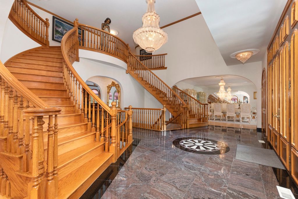 A true masterpiece of design and old world craftsmanship. This world-class executive estate offers a rare opportunity to own one of the most remarkable residences ever constructed in the region. From the moment you arrive at the wrought iron gates and follow the oval-shaped driveway to the impressive double doors of the front entryway, this home makes an unforgettable impression. Wrapped in natural dolomite stone with four polished balconies, the exterior speaks to timeless elegance, while the interiors blend grand scale with exquisite details. Step through the impressive entrance and into the magnificent Grand Foyer, where marble floors and twin double-helix spiral staircases set the tone for the home's architectural brilliance. Every inch of this 24-room estate has been thoughtfully designed to balance elegance with livability, creating an environment that is both breathtaking and welcoming. Offering 6 expansive bedrooms and 8 luxurious bathrooms, the residence ensures comfort and privacy for both family and guests. Each bedroom features a walk-in closet, while the dream master suite provides a personal sanctuary designed for rest and relaxation. The spa-inspired baths include 6 whirlpool tubs, 5 steam shower/saunas, a private spa and a dry sauna, turning everyday routines into indulgent rituals. Entertain with ease in the 30-seat banquet hall/ballroom, host wine tastings in the climate controlled wine cellar, or relax with a book in the richly appointed library. A mahogany art gallery and a private chapel offer unique spaces for reflection, creativity, and inspiration. The estate also features a fitness room, main floor laundry, and a security room, ensuring both convenience and peace of mind. For those who love to cook or entertain, this home offers two full gourmet kitchens, each designed to accommodate everything from intimate family dinners to large-scale events. Gather in style, surrounded by 33 Strauss crystal chandeliers-each adorned with 24-karot gold links-that illuminate the home with elegance and brilliance. Two fireplaces provide warmth and ambiance, while 4 independent HVAC systems, complete with dehumidifiers, allow for customized comfort throughout. Leisure and recreation abound in this estate. Take a swim in the indoor pool, enjoy a match on the tennis/basketball court, or retreat to the lower level where the walk-out basement provides additional above-grade living space and easy outdoor access. The 4-car garage offers ample room for vehicles and storage, while the gated entrances ensure privacy and security. This home is more than just a residence - it is a lifestyle. Whether hosting elegant galas, welcoming overnight guests, or simply enjoying quiet evenings at home, the estate offers a setting that is as versatile as it is stunning. The expansive rooms, soaring ceilings, and flowless finishes create an atmosphere of grandeur, while the thoughtful layout ensures comfort in everyday living. Few properties can match the scale, quality, and presence of this estate. It is a place where unforgettable memories are made, where every detail has been elevated to the highest standard, and where luxury is not only seen but experienced. For those seeking a home that redefines extraordinary, this estate stands alone as a true one-of-a-kind offering.