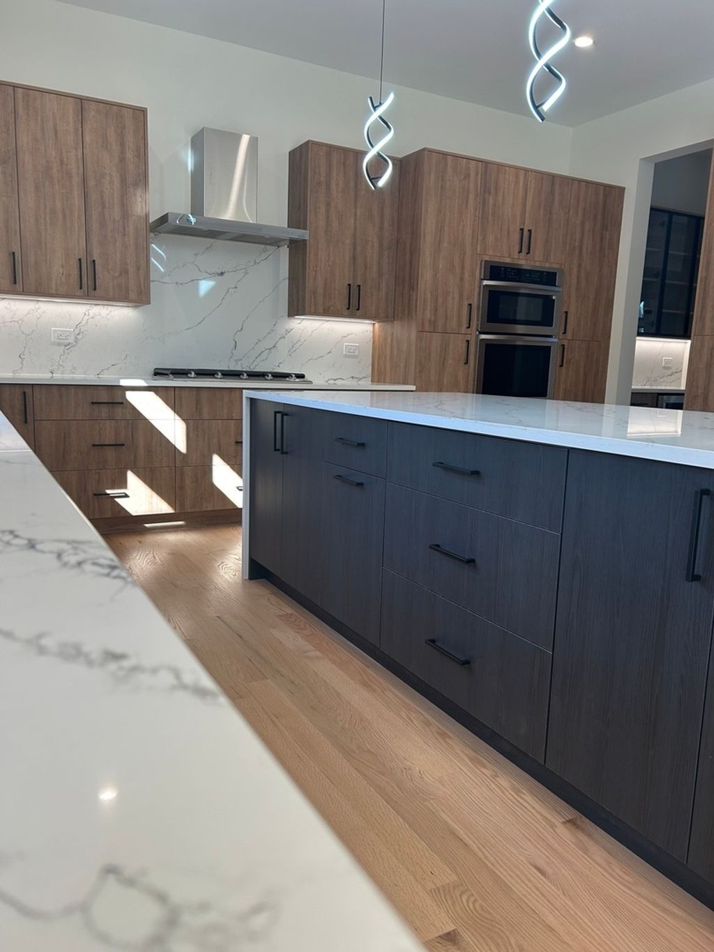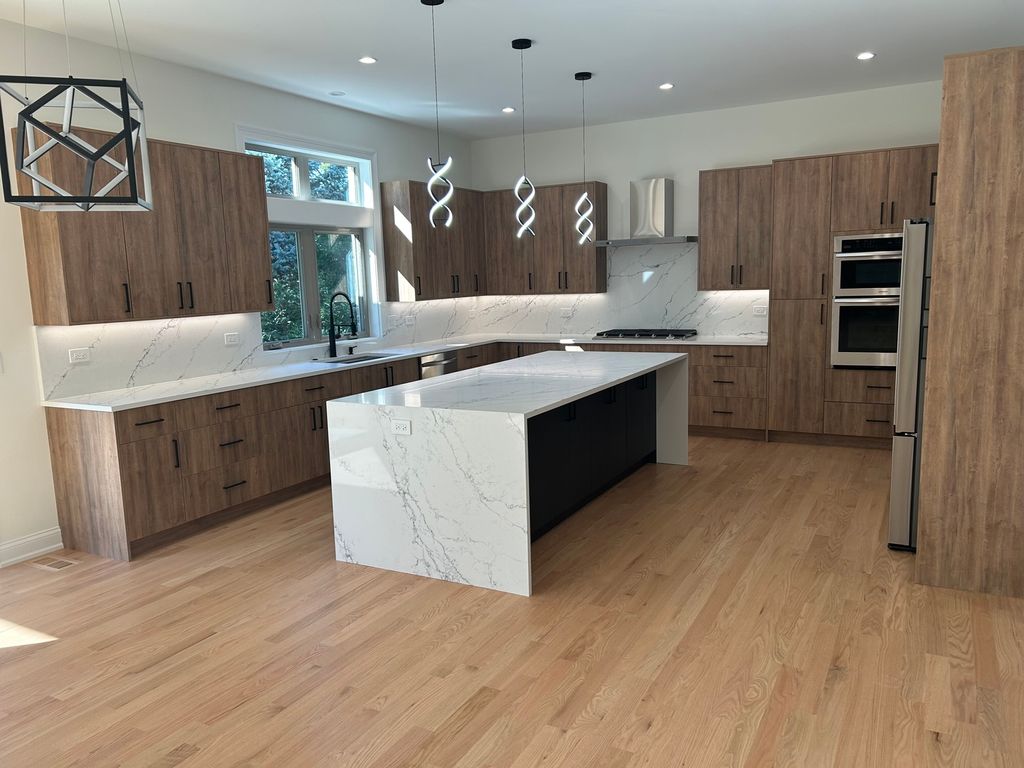 New Construction Modern Luxury in Crystal Creek! 15966 Crystal Creek Drive delivers bold design and flawless execution in this all-brick custom home with contemporary stucco accents. Sun-splashed interiors flow effortlessly through an open concept layout, anchored by a chef's kitchen with an oversized quartz island, custom cabinetry, butler's pantry + dry bar, and premium stainless appliances-built to impress and designed for entertaining. Beautiful natural-finish hardwood floors and quartz detail carry through both levels. Upstairs, the oversized primary suite features a spa-style bath and walk-in closet, paired with three large en-suite bedrooms. The 3-car garage is a dream-13'+ ceilings, modern glass doors, and ready for an EV charger, with plenty of room for storage or a lift. Built for efficiency and durability: 2 high-efficiency furnaces, tankless water heater, Pella windows, double sump pumps, internal/external French drains, and extra-thick walls. Premium corner lot on a quiet dead end for privacy, yet just minutes from shopping, restaurants, parks, and expressways. A true showpiece blending Homer Glen charm with modern luxury living!