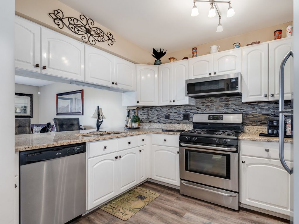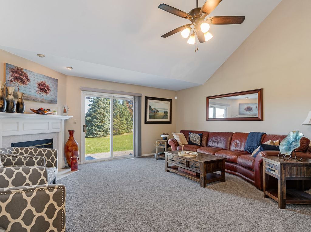 Don't be the last in line to show this fantastic 3 bedroom, 21/2 bath beauty! Home has been well maintained and is in "move in condition". Tastefully painted to match your decorating palate. Main floor foyer leads you into a spacious kitchen with sparkling granite countertops, breakfast bar, and all stainless-steel appliances. Separate dining room for entertaining and family meals. Next is the living room with a gas log fireplace for those cozy nights watching your favorite movies or just star gazing thru the skylights in the vaulted ceiling that add to the open concept feel. The large main floor primary suite has its own private full bath, and walk-in closets. Walk out the living room door to a 12'x20' stamped concrete patio. The yard is one of the largest in the subdivision! Up the staircase to a 10'x16' vaulted loft area that can be used for a home office, T.V. room, or just a place to relax. 2 spacious bedrooms with walk -in closets and a shared bathroom finish the upper level. Park both vehicles in their own epoxy floored garage away from the elements. HVAC is 3 years old; Roof is 3 years old. Low association dues include common insurance, lawn maintenance, snow removal, and exterior maintenance. Close to major interstate highways and shopping, but quiet enough to enjoy privacy. One look and you will be hooked!