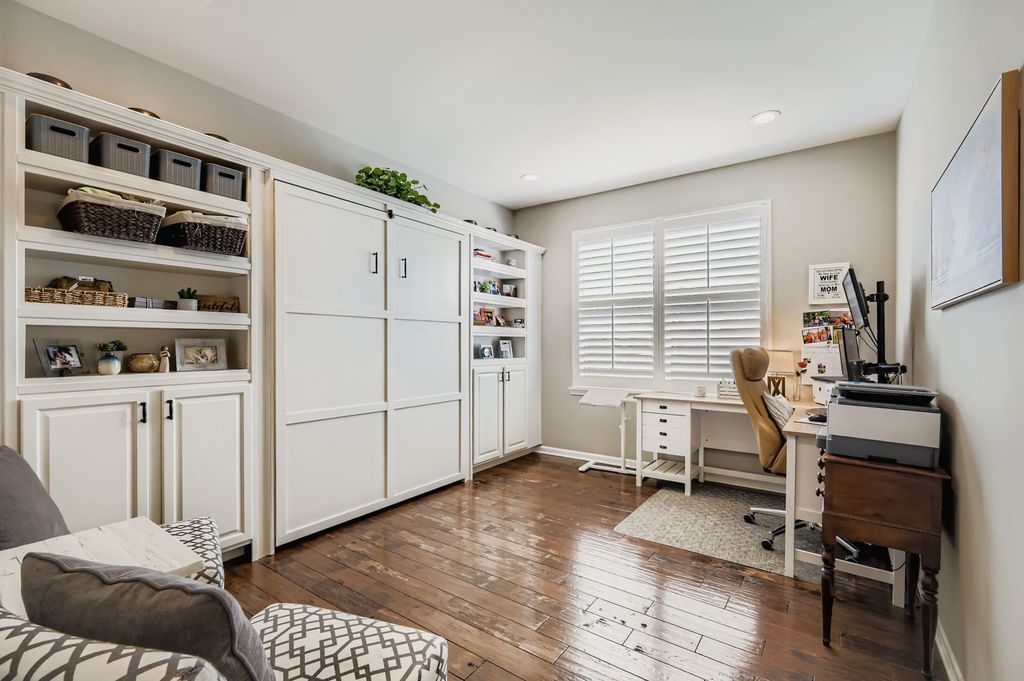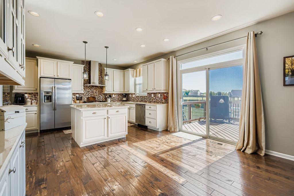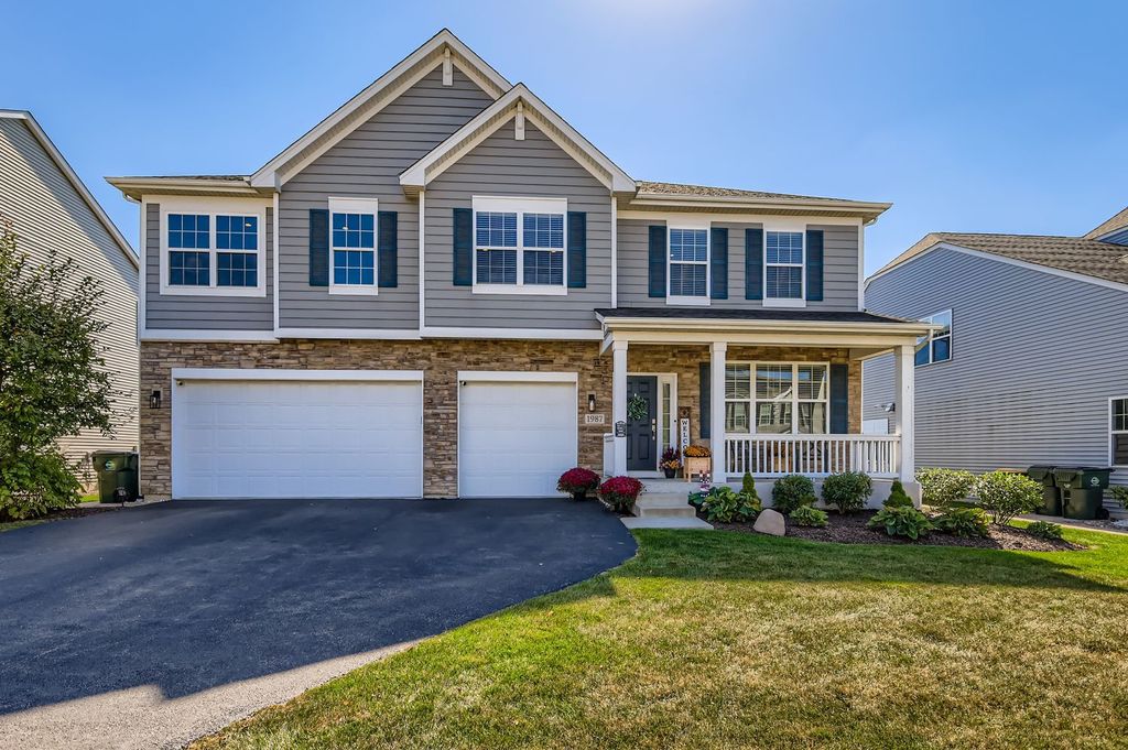 Welcome to this stunning 4-bedroom, 2.1-bath builder's model home located in the Sagebrook Subdivision and within desireable St. Charles School District 303. This spacious and meticulously upgraded home offers the luxury of new construction without the wait-plus over $160,000 in high-end builder upgrades and custom additions that make it truly move-in ready. Step inside to find hand-scraped solid oak hardwood flooring throughout the entire main level. Expansive eat-in kitchen features a large island, 42" cabinetry, quartz countertops, stainless steel appliances, and walk-in pantry. The adjoining family room is perfect for cozy evenings, with built-in surround sound speakers.The first-floor office/den includes custom built-ins and a Murphy bed-ideal for guests or a quiet work-from-home setup.Upstairs, the luxurious primary suite boasts a tray ceiling, a cozy second fireplace, dual walk-in closets, and a spa-like en suite bath with double vanity, soaking tub, and separate shower. The large loft area, currently outfitted as a home theater already equipped with projector, screen, and in-wall speakers, offers space for relaxing movie nights together. The full, unfinished basement with bathroom rough-in is ready for your custom touches offering additional living space, a gym, or storage. Step outside to enjoy the professionally landscaped yard on your deck, ideal for summer BBQs, gatherings, or simply relaxing in the shade. Recent updates include new wood deck and pergola (2024); new dishwasher (2025); built in Murphy bed (2023); new lighting fixtures (2022) and wood blinds and window treatments (2022). Located just minutes from parks, trails, shopping, restaurants, and charming downtown St. Charles, this home combines modern luxury, thoughtful design, and a prime location.