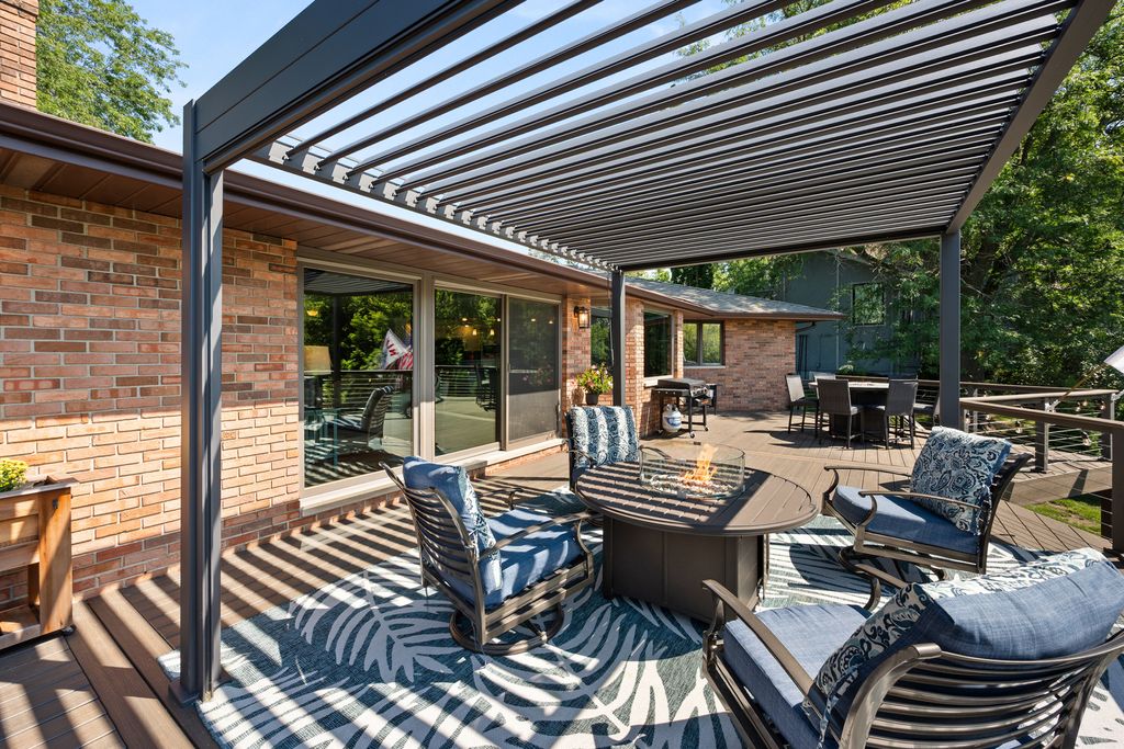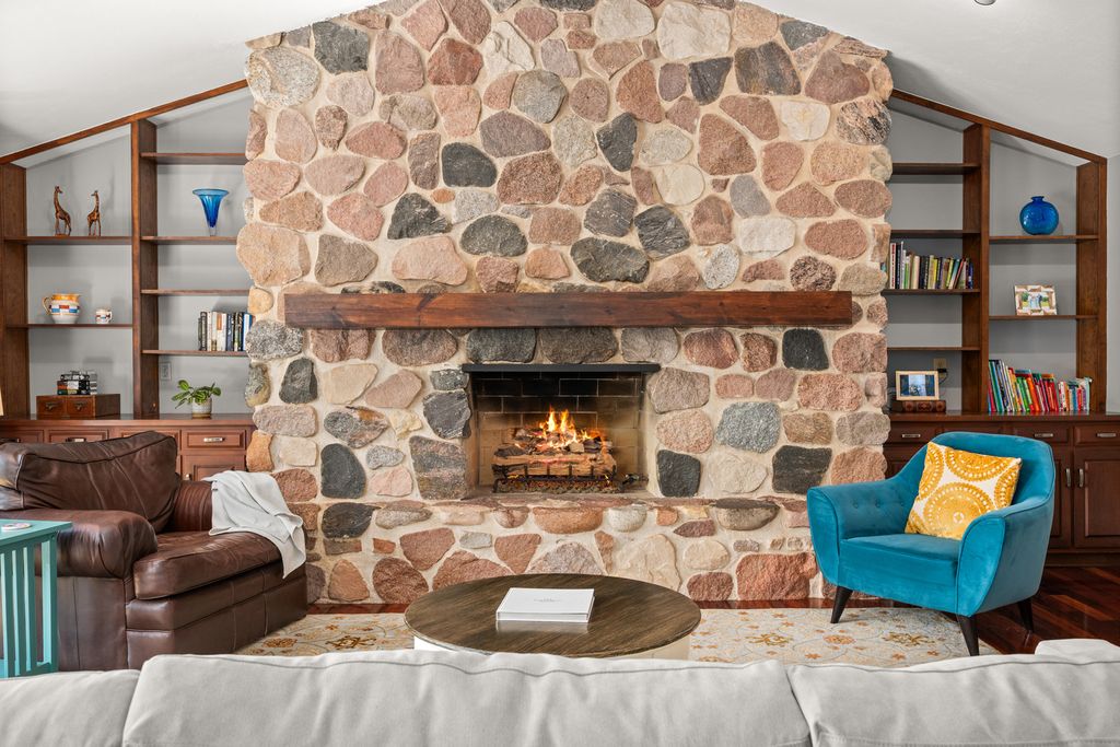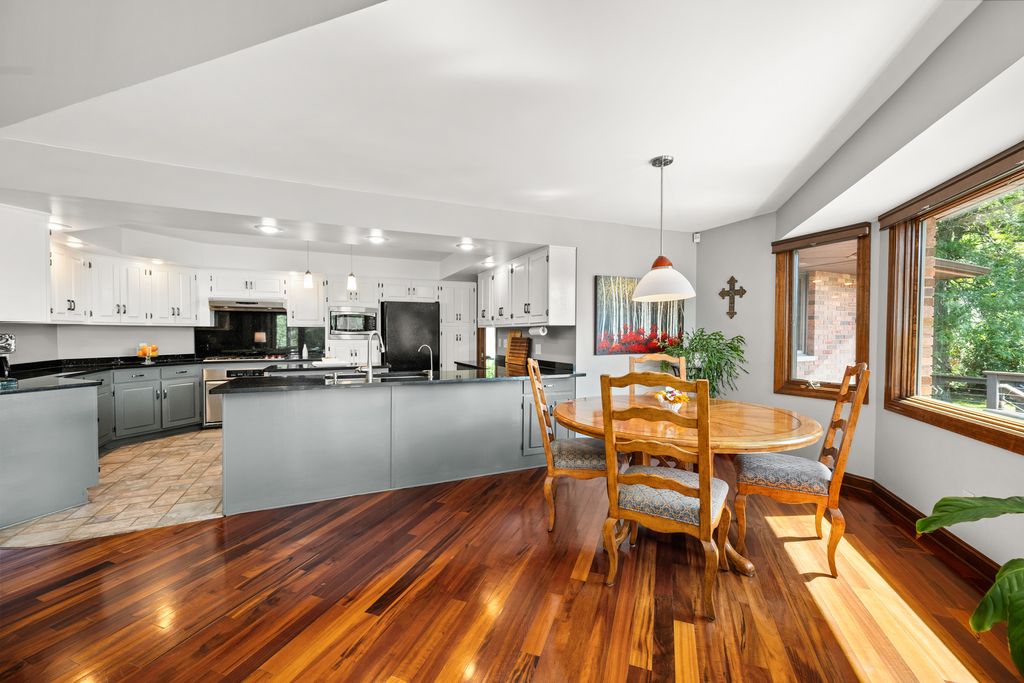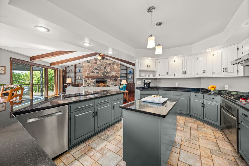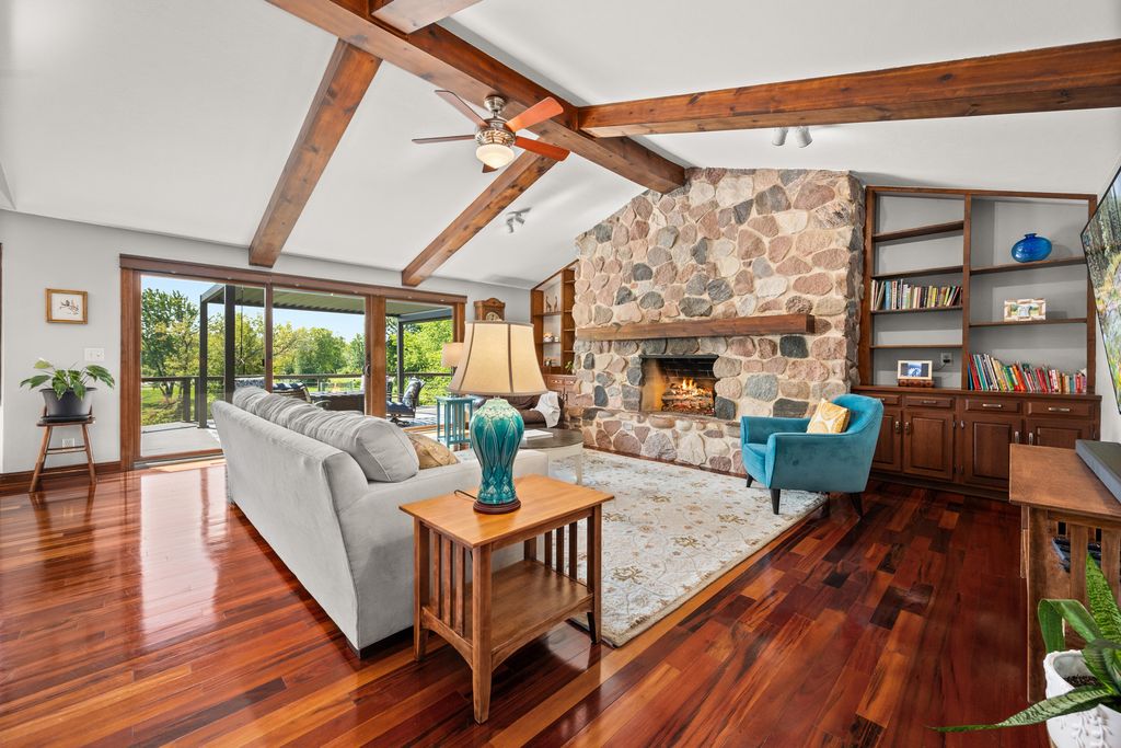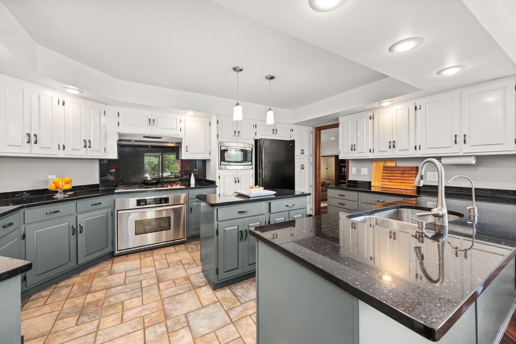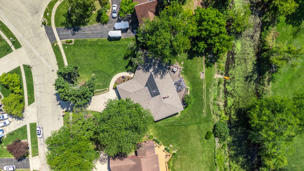 ***Click on spectacular Cinematic Home Tour!*** This timeless all-brick 6,973 sq. ft. ranch home with a "finished walkout basement" showcases an expansive maintenance-free viewing deck! Immerse yourself in nature's beauty while enjoying a serene water view of the Kishwaukee River and views of the Buena Vista Golf Course's holes #1 and #2! This upper-level outdoor oasis is the entire width of the back elevation, capturing a fantastic panoramic view of sunrises, sunsets, nature, water, and the golf course. A Mirado pergola has an operational open and close roof system and a west-facing pull-down shade screen. Black carriage lighting, deck lighting, and cable deck spindles complete this amazing outdoor living space. Step down to the river and gather around the stone fire pit, or take a float in your kayak to explore! The covered front porch welcomes you into the open foyer, showcasing Tigerwood hardwood flooring and a Mission-style staircase to the finished walkout lower level. Step down into a 30'x19' Living Room featuring three Andersen viewing windows, plush carpeting, and 9' ceilings. A gray color scheme unites the Living and Dining Room. Tigerwood flooring continues into the Dining Room with a brushed nickel chandelier. The heart of this lovely home presents an inviting kitchen with black granite countertops and backsplash illuminated with copper flecks, white cabinetry with earthtone green contrasting lower cabinetry, an island, pendant lighting, and a 9' breakfast bar. Wolf gas cooktop, KitchenAid built-in convection oven, Bosch dishwasher, and an eating area with A+ outdoor views complete this chef's delight kitchen. The Family Room boasts a vaulted and beamed ceiling and a floor-to-ceiling majestic stone gas log-lit fireplace. The wide glide Andersen sliding glass door opens to the deck area. Through double doors discover the owner's bedroom suite, presenting deck access, a walk-in closet, and a spa-like bath with radiant in-floor heating, granite vanity tops, a 36" comfort height rich wood vanity, Kohler undermount sinks, and a stunning custom tiled shower with a glass door. A 2nd linen closet and full bath with a comfort height vanity, granite top, 2 sinks, and a tile surround tub/shower are shared by other bedrooms. A signature Tigerwood staircase invites you to an additional level of finished living space, especially designed for entertainment and enjoyment! The dark gray brick gas log-lit 2-way fireplace makes a grand statement, embraced by candle-like sconces and a wood mantle. There is a 2nd family room, a dry bar, a game area including a billiard light fixture, and a dedicated fitness area displaying a rubber floor and mirrors. Wait, there is more! Imagine a 21'x19' home office space hosting a floor-to-ceiling white brick gas log-lit fireplace, black track lighting, and 19' of wall-to-wall bookshelves and cabinetry! A 5th bedroom and a 3rd full bathroom accommodate additional living and guest convenience. This walkout lower level leads you to a covered patio. Abundant landscaping, scenic beauty, and cascading stone embrace this patio space. Two Goodman furnaces, storage, a shop, and a cellar area are a few more features. This bespoke residence is nestled on a .66 acre premier lot with professional landscaping enhanced by direct river access, comes equipped with a 3-car wide concrete driveway, and is located on a cul-de-sac street, near walking and bike paths, golf courses, and mature tree-lined streetscapes. Average utility costs: Nicor gas at $117.00 a month and ComEd at $210.00 a month. Seller Improvements List available upon request. This is an excellent opportunity to LOVE your new HOME and its BREATHTAKING SETTING!