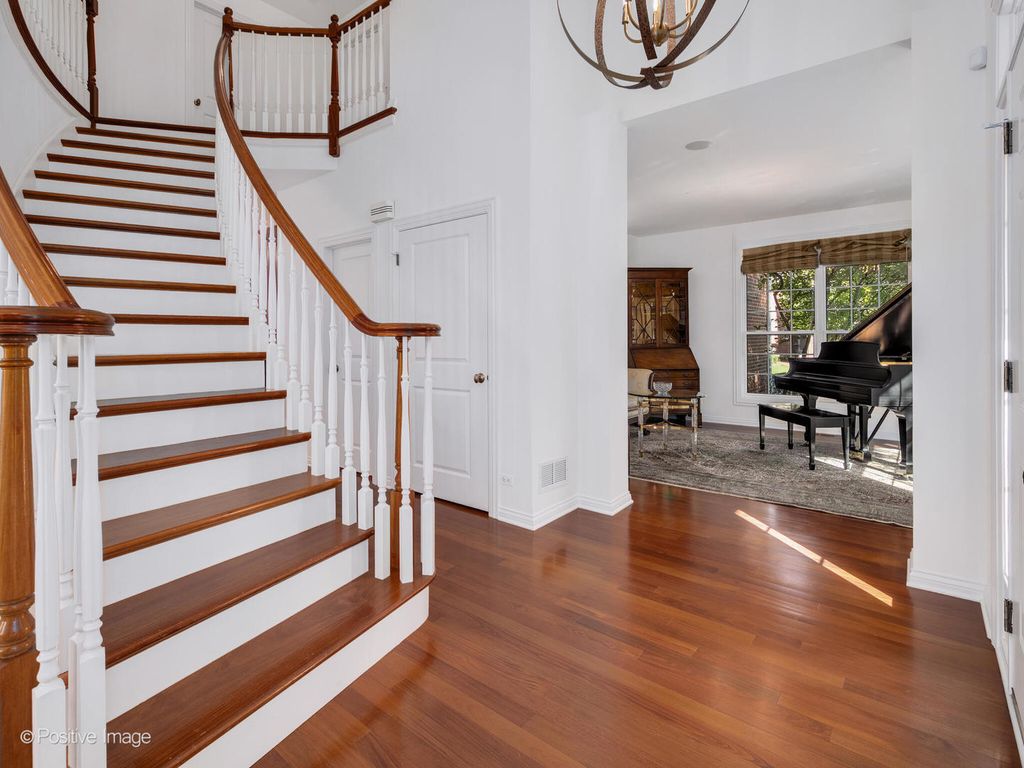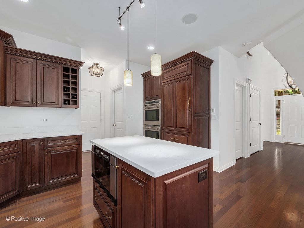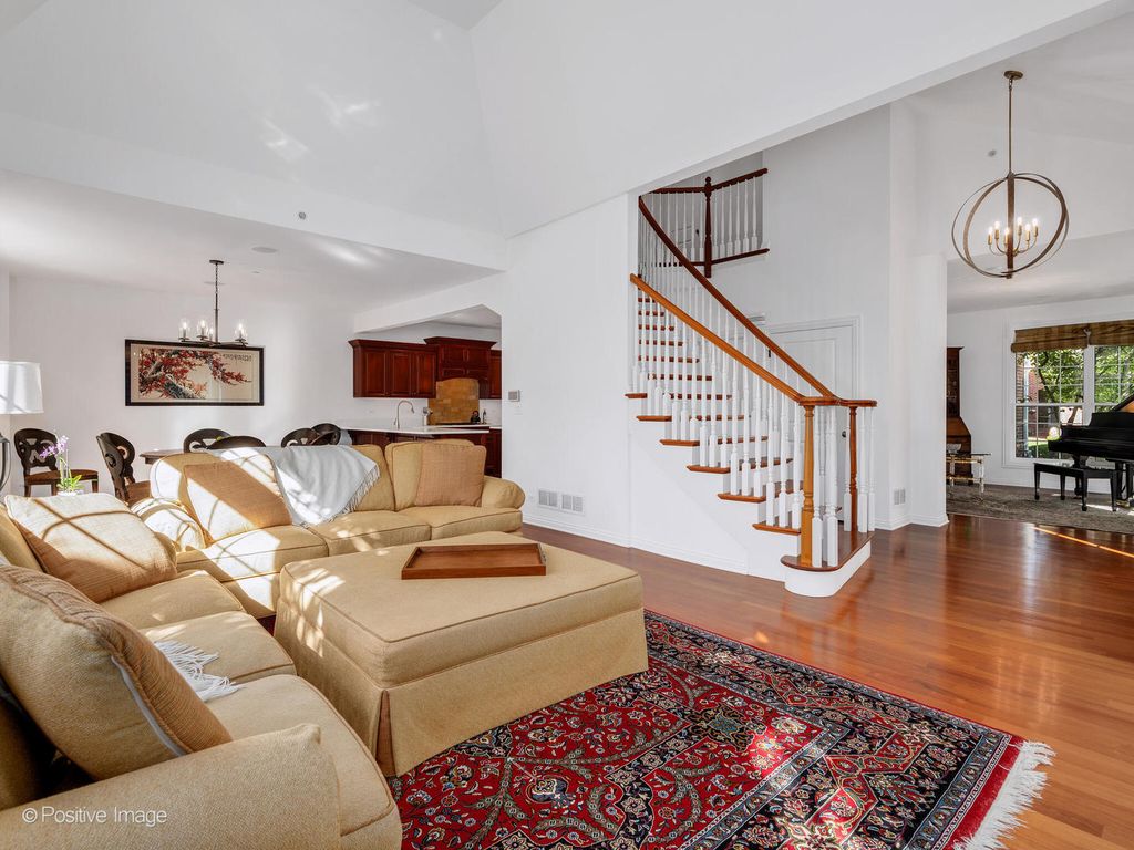 Welcome to this stunning end-unit townhome in the highly desirable Timber Trails community. Step inside to find a dramatic two-story foyer with a curved staircase, gorgeous hardwood flooring throughout the main and second levels, and an open-concept living area perfect for entertaining. The gourmet kitchen is equipped with high-end appliances including a Sub-Zero refrigerator, WOLF 6-burner cooktop, microwave and double ovens, Bosch dishwasher and beautiful new white quartz countertops. Tall cabinets provide ample storage, and the kitchen opens to a spacious family room with one of two gas fireplaces. The luxurious master suite features a recently remodeled bath with heated floors, double sinks, and a walk-in closet. Additional bedrooms are generously sized, and the finished basement includes new plush carpeting, a fourth bedroom, full bath, recreation room with another gas fireplace and abundant storage. Enjoy modern amenities such as: Two state-of-the-art SONY 65" OLED entertainment systems; Multi-zone Sonos sound system; EERO web wifi system; New Eco Tech foam attic insulation; Three-zoned central HVAC system; Security System; LG washer & dryer and New Epoxy floor in garage and storage room. Outdoor features include a brick paver patio and maintenance-free professionally landscaped grounds. The home sits on a premier interior lot with outstanding views throughout, leading to multiple walking paths and tennis courts. This immaculately maintained, updated and upgraded townhome offers the perfect blend of luxury, comfort, and convenience. Don't miss out!