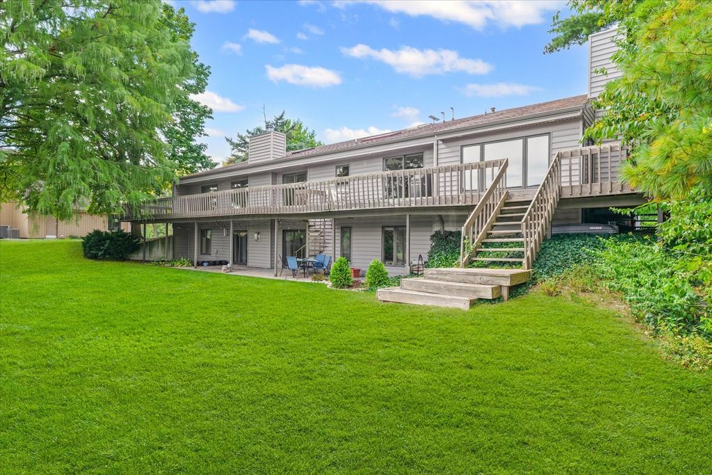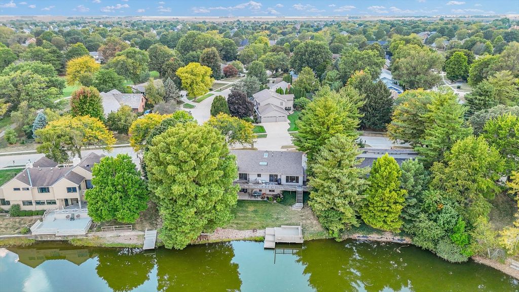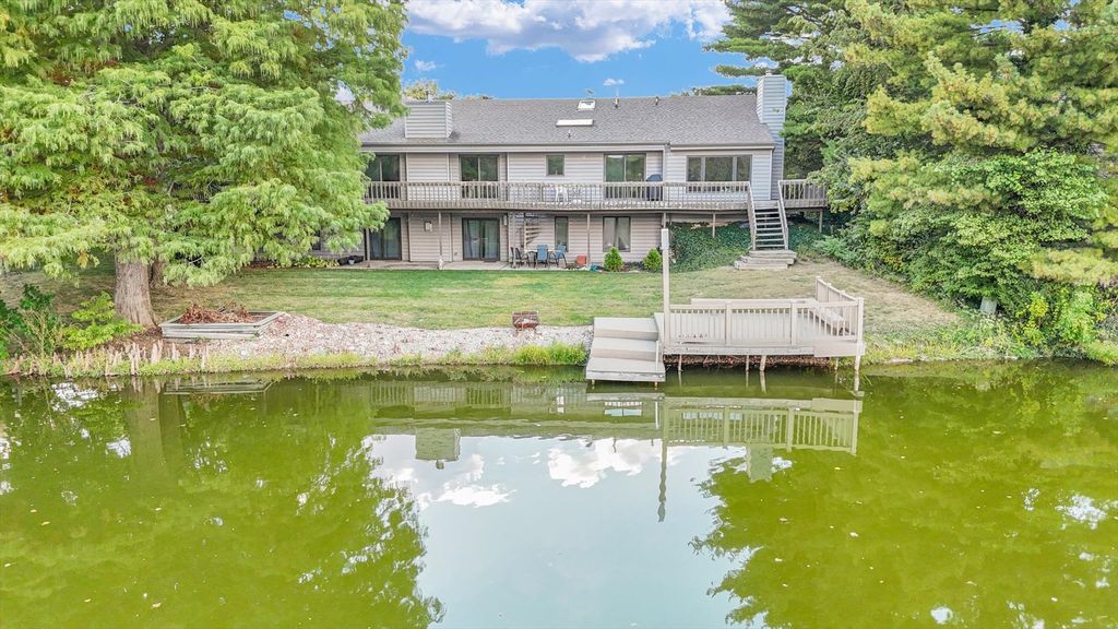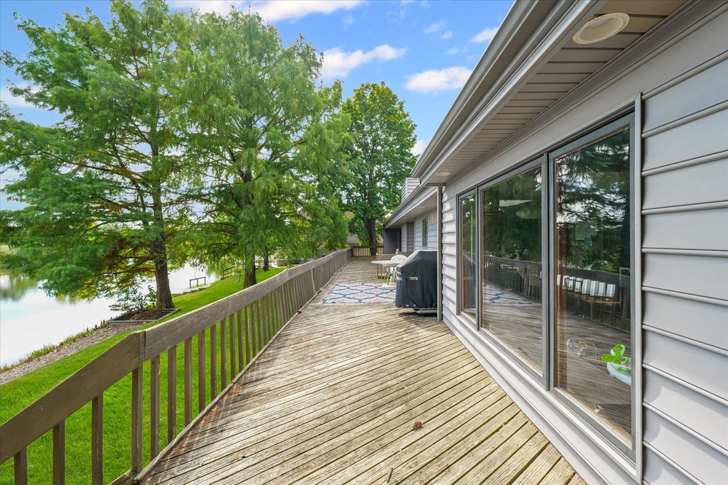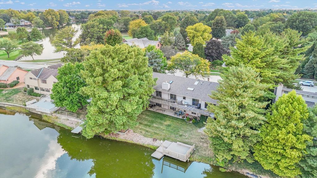 Positioned in the Highly Coveted Lincolnshire Subdivision! This stunning contemporary ranch with a full walkout basement offers an exceptional combination of location, design, and lifestyle. Perfectly situated on the lake and overlooking the 18th hole of Lincolnshire Fields Golf Course, this home provides panoramic views from nearly every room and is just steps away from Lincolnshire Country Club. Inside, the dramatic vaulted-ceiling living room with a modern fireplace creates an inviting centerpiece for gatherings, while the open dining area flows seamlessly onto a two-story deck, ideal for entertaining or enjoying peaceful lake views. The remodeled kitchen showcases hardwood floors, a large island, skylight, breakfast nook, and stainless appliances, with clear sightlines to the family room featuring a stone fireplace and custom built-ins for warmth and versatility. The walkout lower level is a retreat of its own-featuring a spacious rec room with a wet bar and modern kitchenette, a second suite perfect for guests, office space, and direct access to the lake, yard, and private dock. Upstairs and down, multiple fireplaces, skylights, and thoughtful design details create an atmosphere of light and comfort. With over 4,000 sq. ft. of beautifully finished living space, this home balances functionality and elegance in one of Champaign's most sought-after neighborhoods. Recent updates throughout, combined with its unbeatable lake and golf course setting, make this a truly rare opportunity.