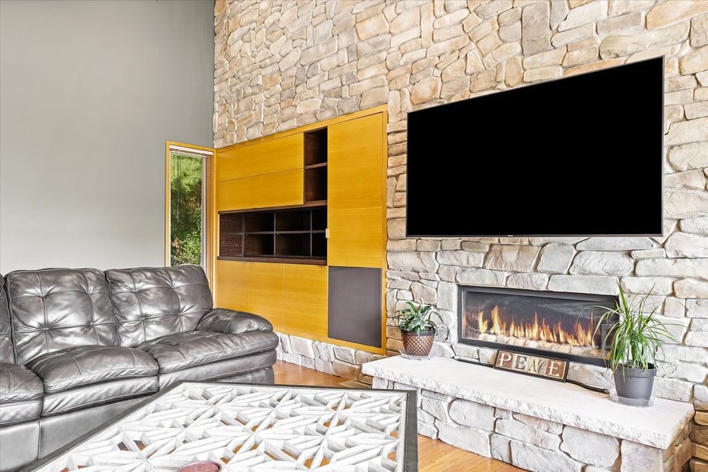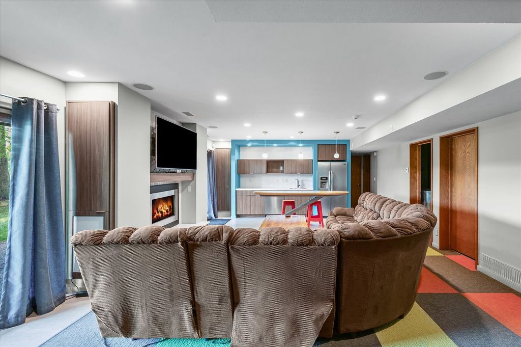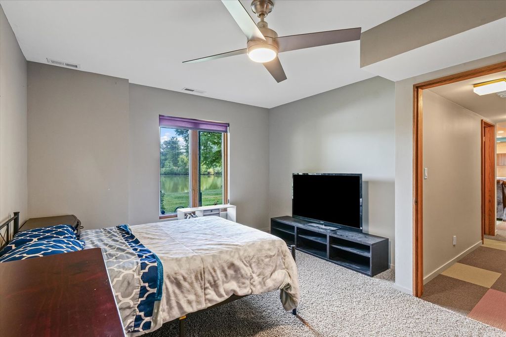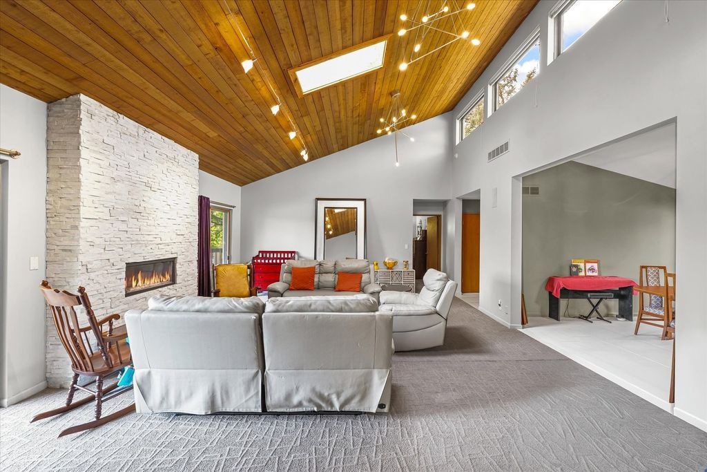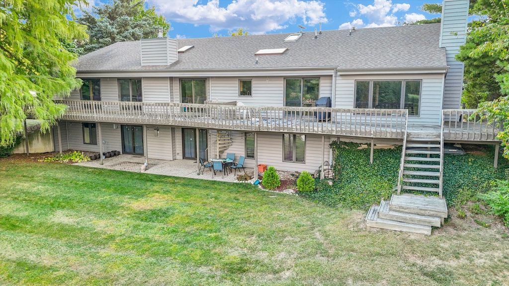 Positioned in the Highly Coveted Lincolnshire Subdivision! This stunning contemporary ranch with a full walkout basement offers an exceptional combination of location, design, and lifestyle. Perfectly situated on the lake and overlooking the 18th hole of Lincolnshire Fields Golf Course, this home provides panoramic views from nearly every room and is just steps away from Lincolnshire Country Club. Inside, the dramatic vaulted-ceiling living room with a modern fireplace creates an inviting centerpiece for gatherings, while the open dining area flows seamlessly onto a two-story deck, ideal for entertaining or enjoying peaceful lake views. The remodeled kitchen showcases hardwood floors, a large island, skylight, breakfast nook, and stainless appliances, with clear sightlines to the family room featuring a stone fireplace and custom built-ins for warmth and versatility. The walkout lower level is a retreat of its own-featuring a spacious rec room with a wet bar and modern kitchenette, a second suite perfect for guests, office space, and direct access to the lake, yard, and private dock. Upstairs and down, multiple fireplaces, skylights, and thoughtful design details create an atmosphere of light and comfort. With over 4,000 sq. ft. of beautifully finished living space, this home balances functionality and elegance in one of Champaign's most sought-after neighborhoods. Recent updates throughout, combined with its unbeatable lake and golf course setting, make this a truly rare opportunity.