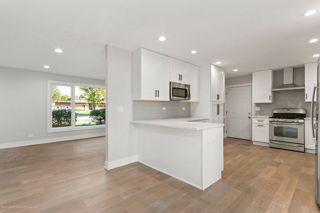 You'll fall in love with this totally remodeled 3 bedroom ranch home! It features an open kitchen with beautiful custom white shaker cabinets, quartz countertops, stainless steel appliances, luxury vinyl plank flooring, neutral backsplash and a large peninsula counter for prepping, a dining area with a breakfast bar counter and sliding glass doors to the back yard, a fully remodeled bathroom features a beautiful vanity and spa like shower, 3 spacious bedrooms with luxury vinyl plank flooring and ample closet space, a laundry room with extra storage and an attached garage. The fenced back yard features a large patio area, storage shed and mature landscaping. It's located in the highly acclaimed Wheaton school district and is conveniently located near schools, parks, shopping, restaurants and 2 Wheaton Metra train stations. Newer items include furnace and AC (2022), Refrigerator (2024), Dishwasher (2024) and Range hood (2025). Don't miss this incredible value!