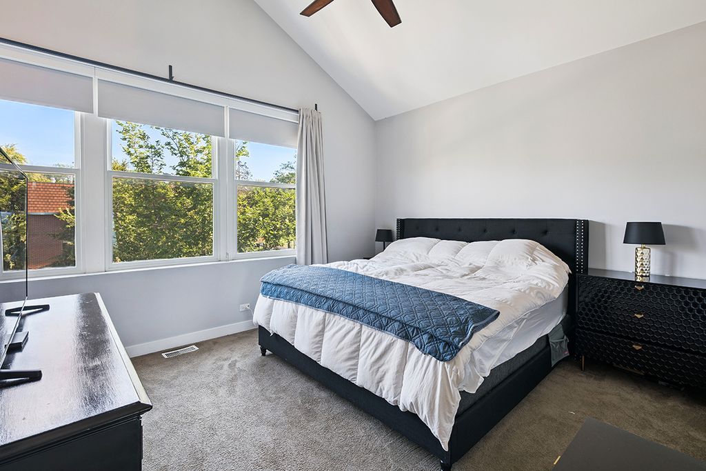 Largest and most desirable floor plan in the sought-after Base Camp Old Irving Park community. This spacious single-family home, built in 2016, offers a remarkable floor plan with exceptional architecture and thoughtful upgrades throughout, the home boasts 10-foot ceilings on the main level, vaulted ceilings upstairs, 8-foot solid core interior doors, and oversized windows that flood the space with natural light. The result is a clean, open, and airy atmosphere that truly feels like home. The chef's kitchen is a standout, featuring a large island, pantry, custom stone backsplash, upgraded cabinetry, a wine cooler, cooktop, and a separate range. Just steps from the kitchen, a rear deck and private yard create an ideal setting for outdoor entertaining. The main living area is open and versatile, with space for formal dining and a generous seating arrangement. Upstairs, you'll find three bedrooms, including a primary suite with a professionally organized walk-in closet, oversized shower, and large windows that let in plenty of light. The lower level expands your living space with a spacious rec room, two additional bedrooms, a full bathroom, upgraded plush carpeting, and extra storage. Located just steps from the Metra Grayland stop-only 16 minutes to Union Station-this home offers incredible convenience. You're also within walking distance to Portage Park's Six Corners, two Blue Line stops, and just minutes from I-90/94 and Logan Square. The community includes a private park and a two-car garage with additional storage. This is a fantastic opportunity to own in a vibrant, well-connected neighborhood.