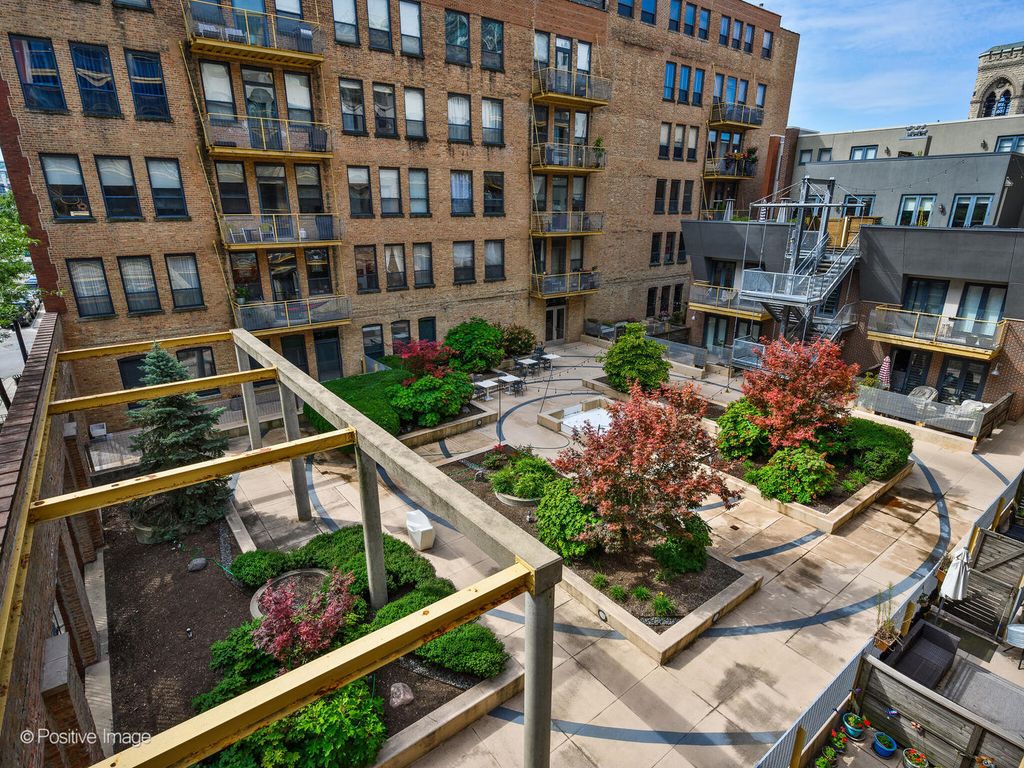 Discover the charm of this vibrant southeast corner loft condo, a two-bedroom, two-bathroom gem nestled in the Bank Note Place Condominium in the lovely Prairie District and close to Motor Row. Bathed in natural light, this residence was built in 1902, ensuring solid concrete foundation and an exceptionally tranquil atmosphere. Your expansive private balcony finished with a medal decorative railing, stretches along the length of the living room, offering serene views of the beautifully landscaped courtyard which won a prestigious award for its design when converted into residential loft condos. Balcony includes a natural gas line for a BBQ. The authentic industrial loft features: an inviting gallery foyer for art work and custom stainless bypass doors, complete with LG in-unit laundry for your convenience. The spacious kitchen is a dream for those who entertain, boasting an oversized 2 tier island and breakfast bar, including a Fisher& Paykel refrigerator w/Active Smart Technology, Kitchen Aid wine cooler, and Superba gas oven/range. Bosch dishwasher, 42" solid cherry wood cabinets and finished with quartz counter tops. Large primary suite with large closet, bathroom 13 x 9, walk in shower/jet tub combination area, operable frosted window, stainless steel sink with 2 faucets and a separate toilet area which could be closed off if preferred for privacy. Bamboo flooring, exposed Chicago brick walls, 11 foot ceilings. Pet friendly building . One heated garage parking space included and a 3' x 2.5' x 11' storage room on the same floor as unit. Both bedrooms are enclosed. Capital improvements Include: elevators have new mechanical and interior finish, roof had a new layer approximately 7 years ago, newer main hot water heater for complex, updated Fob system and code/key unit door system. Located on Indiana Avenue, a picturesque tree lined street, you'll enjoy easy access to the Lakefront, Soldier Field, McCormick Place, Museum Campus, and convenient transit options, including the Green and Red lines with a CTA bus stop just around the corner. Trendy dining nearby.