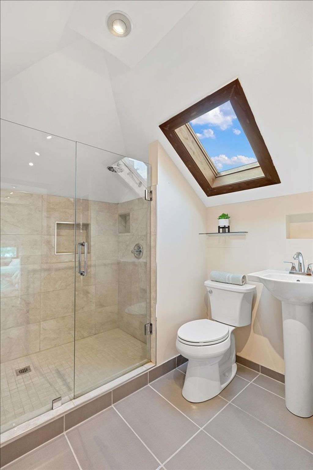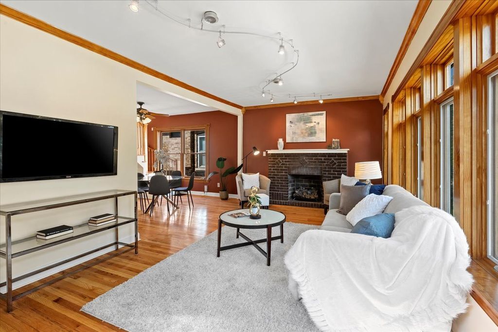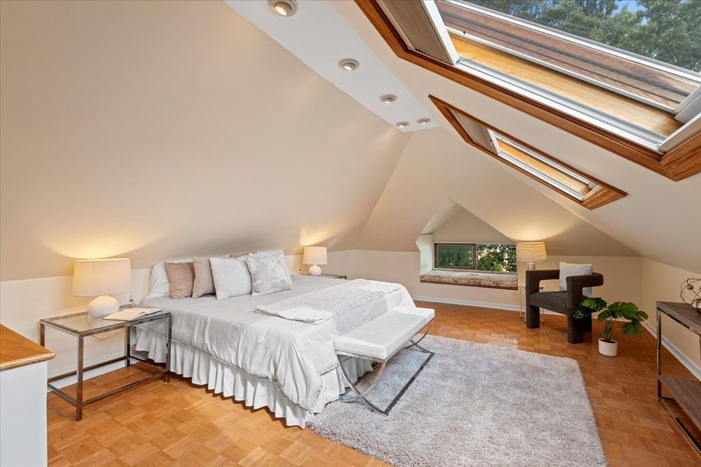 Get ready to check off all the "must have items" on your wish list! This brick bungalow sits on a corner lot, gets an enormous amount of sunlight, has been very well updated and cared for by thoughtful owners, and is in the prestigious The Villa historic neighborhood! The main level has a large living room with a gas fireplace and lovely windows that overlook the tree-lined street. The dining area is open to the living room and while it easily fits a table for 4, a table can extend into the living area for larger gatherings! The kitchen was totally renovated in 2016 and has quality wood cabinets, granite counters, and stainless steel appliances including double refrigerated drawers. Large windows and a glass door to the back yard allow loads of light into the kitchen, and easy outdoor entertaining. There is a custom built 2-tired deck out the kitchen door with a bay for a grill and built-in bench seating. The main level also features two generous bedrooms and a spacious full bathroom with a whirlpool tub! The 2nd floor is a primary suite complete with space for a king size bed, 2 large south facing skylights, a window seat at the front window, and an en-suite bathroom that was totally renovated in 2020, complete with walk-in shower, skylight, and a closet. The partially finished basement is prepped and ready for your plans! The basement was dug down in 2009 and has a perimeter drain tile and sump pump, the walls have been drywalled, there is a full bathroom (new in 2010), and lots of open space to make another bedroom/family room/recreation space. There is a dark room equipped with a stainless steel utility sink and exhaust fan, and a laundry room with a door to access to the back yard. The back yard is fully fenced in, has a 2 car brick garage, a lovely edible garden along the south side of the home (grape vines, raspberries, a producing peach tree, rhubarb, and more!) and lots of beautiful perennial landscaping thru the property. Enjoy sunny days and cool nights in the backyard while you watch movies on the movie screen that operates on a switch on the garage wall! This home underwent a large renovation in 2007 that included new windows and roof. The home has been updated with central heat and air conditioning. The sellers have done many updates, including basement rennovations; gas fireplace; deck; new 100amp electric panel; 2016 new kitchen and appliances; new back and front doors; refinished hardwood floors; 2020 primary bathroom; rebuilt front concrete steps and brick wall and tuckpointed chimney 2022. Included in sale: basement fridge and deep freezer, window ac (which sellers used to supplement central ac in primary bedroom), security system, curtains/blinds, movie screen, wardrobes in bedroom, linen cabinet in bathroom. Close to Blue Line, 90/94, Metra, Irving Park restaurants like Smoque, LaVilla, CTA Tacos, Backlot, Lou Malnati's, Eris Cider and Brewery, Old Irving Brewery, and Independence Park (with farmers markets)! If you have been looking for a home that is well maintained, move in ready, and a perfect Goldilocks size...here it is!