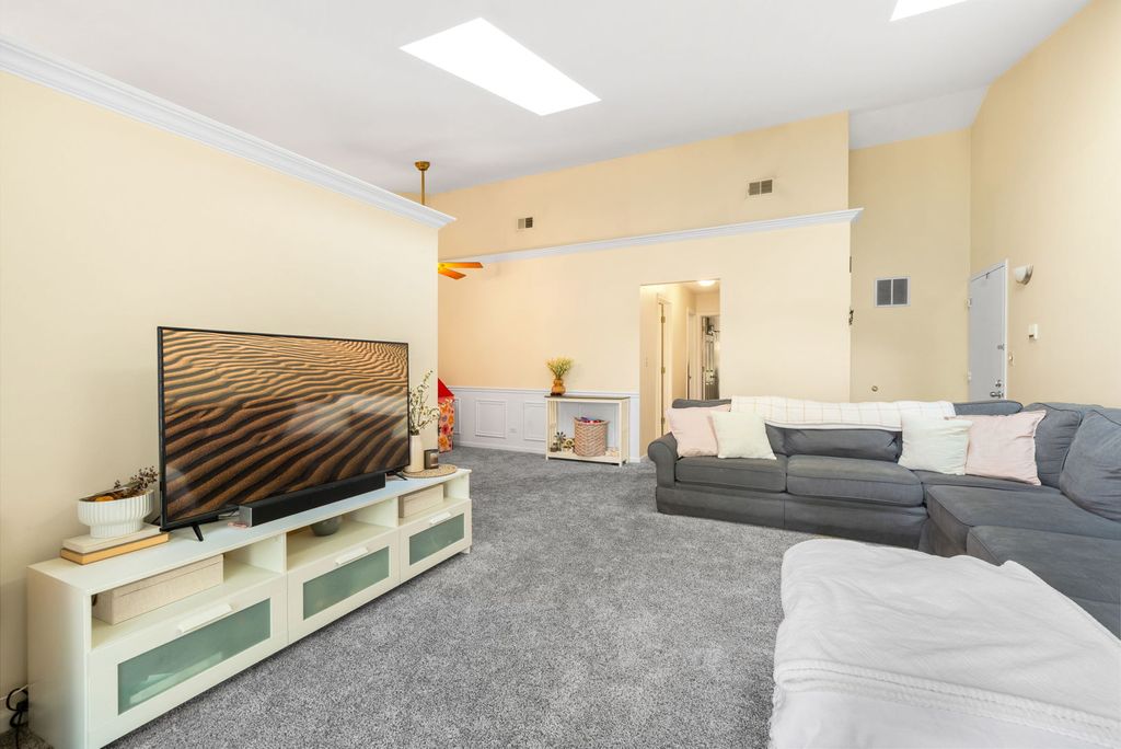 Move right in to this well-kept home that has been lovingly maintained by the tenants and owner. The kitchen offers room for a table and flows into the dining area, perfect for entertaining and extra seating. You can step out to the balcony from either the kitchen or the living room for fresh air and relaxation. In the winter, enjoy the cozy gas log fireplace, while skylights and vaulted ceilings fill the space with natural light and create an airy, open feel. The spacious primary bedroom features a walk-in closet, and the second bedroom is nicely sized as well. Additional highlights include stainless steel kitchen appliances, white cabinetry, like-new carpet, ceiling fans, a separate laundry room adding convenience and function and the convenience of a private garage.
