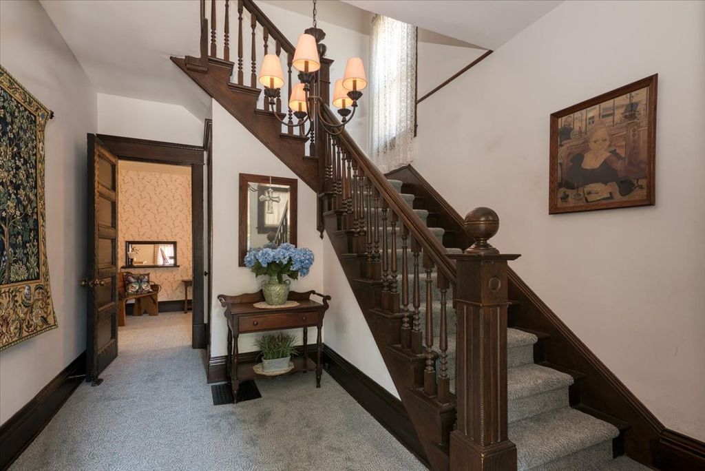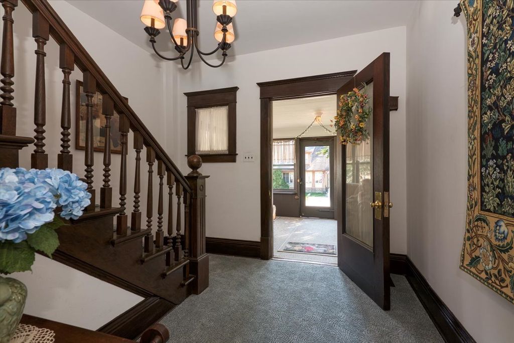 Step into timeless elegance with this beautifully maintained Victorian offering exceptionally large rooms, abundant natural light, and stunning natural woodwork throughout. Perfectly positioned in the heart of downtown DeKalb, this 3-bedroom, 1.5-bath home blends historic character with modern comfort. The main level features a bright and spacious living room, an inviting formal dining room, and an enclosed front porch ideal for morning coffee or relaxing evenings. The upper level includes a convenient kitchenette, perfect for guests, extended living, or creative workspace. A full walk-up attic provides outstanding potential for future expansion. Additional features include a dry basement for extra storage, and a fully fenced yard with a patio-an ideal setting for gatherings. The oversized 2.5-car detached garage with alley access offers great convenience and functionality. With parks, schools, shopping, dining, and entertainment just steps away, this home offers the perfect blend of location, charm, and livability. A wonderful home to enjoy for the Holidays!