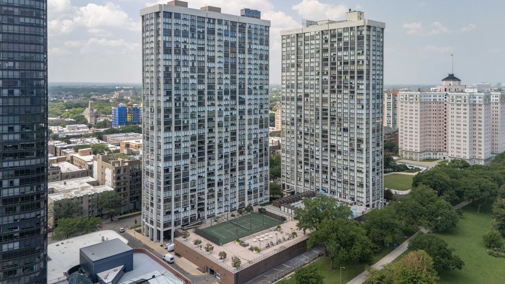 This spacious condo offers breathtaking sunrise views over Lake Michigan and city skylines. Oversized windows fill the open-concept living and dining area with abundant natural light, creating a warm and inviting atmosphere. Modern Upgrades Throughout. Two generous bedrooms with ample closet space. Two full bathrooms, tastefully updated with modern fixtures. Upgraded kitchen with granite countertops, stainless steel appliances, and contemporary cabinetry. Sleek laminating floors and neutral finishes throughout for a move-in ready feel. Full-service building offering, 24-hour door staff, outdoor sundeck, tennis court, laundry facilities, parking available for lease. Direct access to the lakefront trail and beaches. No rental cap. It is a perfect condo for your home or investment.