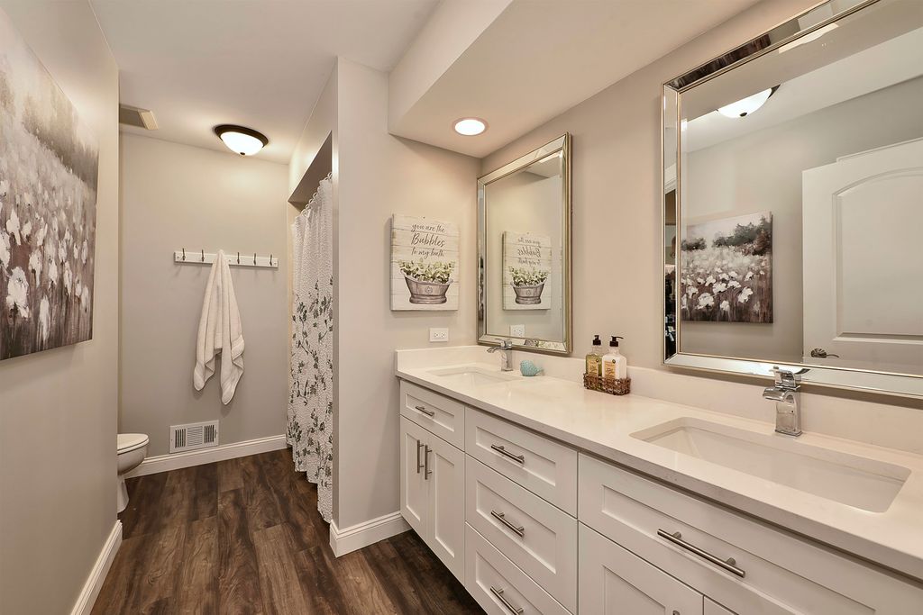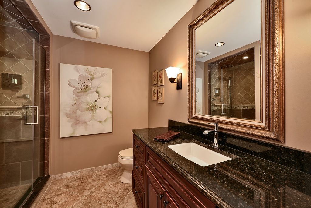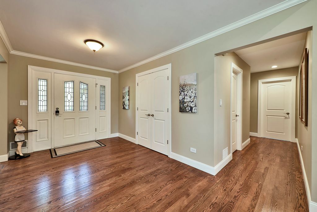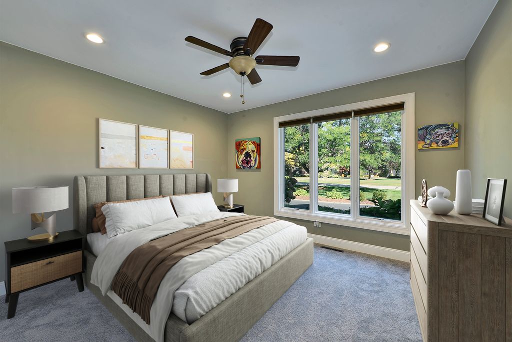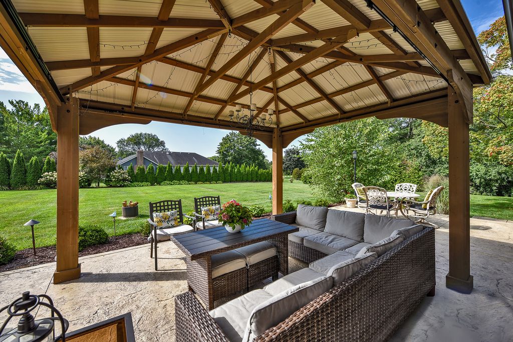 A rare opportunity awaits with this expansive and beautifully appointed four-bedroom ranch, situated in Cheviot Hills subdivision. From the moment you step inside, the welcoming foyer sets an elegant tone. Flanked by the formal living and dining room, it opens to the spacious family room showcasing a dramatic vaulted ceiling, striking stone gas-log fireplace, and a wet bar, all flowing effortlessly into the island kitchen. Here, culinary inspiration abounds with abundant counter space, butcher-block island top, a walk-in pantry and a casual dining area. With seamless access to a sprawling stamped-concrete patio the kitchen stands ready for outdoor entertaining as well. A versatile den provides the perfect home office or study. A charming three-season room, main-floor laundry, and a three-car side-load garage further enhance the home's functionality. All four bedrooms are conveniently located on the main level, including a luxurious primary suite that offers a stunningly remodeled spa-inspired bath. The bath features a double-sink vanity, curbless shower and a freestanding soaking tub. Back in the bedroom, a sliding door opens to a secluded patio, ideal for morning coffee or quiet reflection. The impressive lower level continues to elevate the living experience with impressive nine-foot ceilings, a generous recreation area, a stylish bar/kitchen space with countertop seating, a beautifully finished full bath, dedicated exercise room, and an additional office area. Stepping outside, you will discover a backyard sanctuary. These are meticulously landscaped grounds with lush green space, a covered patio area, built-in grilling station, and a hot tub accessible both from here or inside. This area has been designed for effortless entertaining and personal enjoyment. Properties of this quality, scale, and sophistication are increasingly rare and highly coveted. Don't miss the chance to make this extraordinary home your own.
