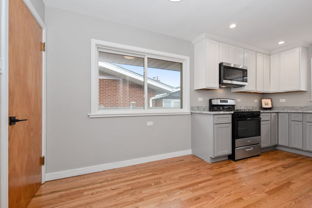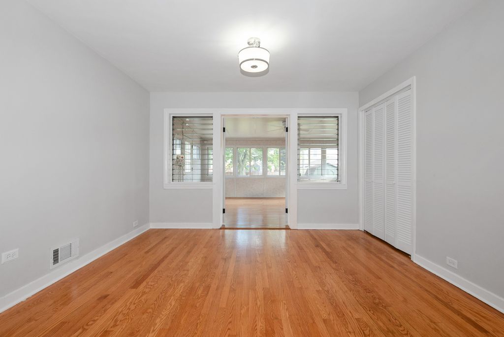 This move-in ready ranch is bright, open, and filled with natural light! It offers 2-3 bedrooms, 1.5 baths, a one-car attached garage, a three-season porch, and a full basement on a quiet, desirable street in Evergreen Park's Southwest Quadrant. The eat-in kitchen has been completely renovated, featuring new cabinets, granite countertops, stainless steel appliances, a new window above the sink, under cabinet lighting, and new hardwood flooring. All main level hardwood floors have been refinished, and new recessed lighting has been added throughout. The entire interior has been freshly painted, including new windows in bedroom two, and both bathrooms have been refreshed. The separate dining room can easily be converted back into a third bedroom. The three-season room boasts windows, screens, and an electric fireplace heater for warmth during winter, plus it's handicapped accessible via a chair lift in the backyard. New carpeting covers the stairs leading to the garage and basement. The spacious basement includes new carpet, a half bath, cedar closet, large laundry area, storage room, and workspace-offering plenty of space to create an extra bedroom, office, playroom, or workout room. Enjoy entertaining outdoors on the brick paver patio at the front or the large patio that wraps around the back of the home. The fully fenced yard features a shed and hot tub. Enclosed front porch, which is perfect for home deliveries. The one-car garage also provides generous attic storage. Conveniently located within walking distance to schools, parks, restaurants, and public transit. This is an estate sale and the home is being sold 'as is'.