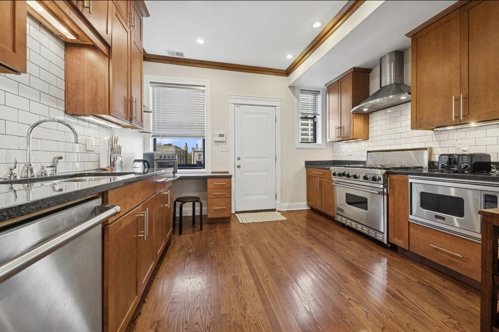 Spacious, updated condo in the heart of Uptown near the Argyle commercial corridor and Aragon Ballroom entertainment district. This top-floor residence features 3 large bedrooms, 2 fully renovated bathrooms, and a flexible floor plan with a separate dining room and living room. The oversized living room can easily be used as a 4th bedroom, office, guest suite, or den, offering versatility for a variety of living needs. The renovated kitchen is equipped with premium Viking stainless steel appliances, ample cabinetry, and solid counter space-ideal for both everyday cooking and entertaining. Both bathrooms have been modernized with quality fixtures and finishes. All bedrooms provide generous proportions suitable for large furnishings, workspace setups, or additional storage needs. A rare highlight of the home is the private rooftop-level patio with city views, perfect for outdoor dining, container gardening, or relaxing. The unit also includes one gated, reserved parking space, a valuable convenience in this location. The building offers extra private storage and dedicated bike storage in the basement, adding functionality for residents who need space for seasonal items, recreational equipment, or gear. Located near the Argyle and Lawrence CTA Red Line stations, multiple bus routes, Montrose Beach, Foster Beach, the Lakefront Trail, and the Uptown entertainment district, this home provides exceptional transit access, walkability, and proximity to restaurants, cafes, retail, nightlife, and parks. Nearby neighborhoods such as Andersonville, Edgewater, Lakeview, and Ravenswood offer additional dining, shopping, and commuting options. With strong housing demand and continued neighborhood investment, this property appeals to those seeking urban convenience, rental potential, architectural charm, and long-term value. The building's historic character paired with modern upgrades presents a unique alternative to newer construction while maintaining manageability in monthly expenses. Flexible layout supports live-work configurations, shared living, or income-producing possibilities.