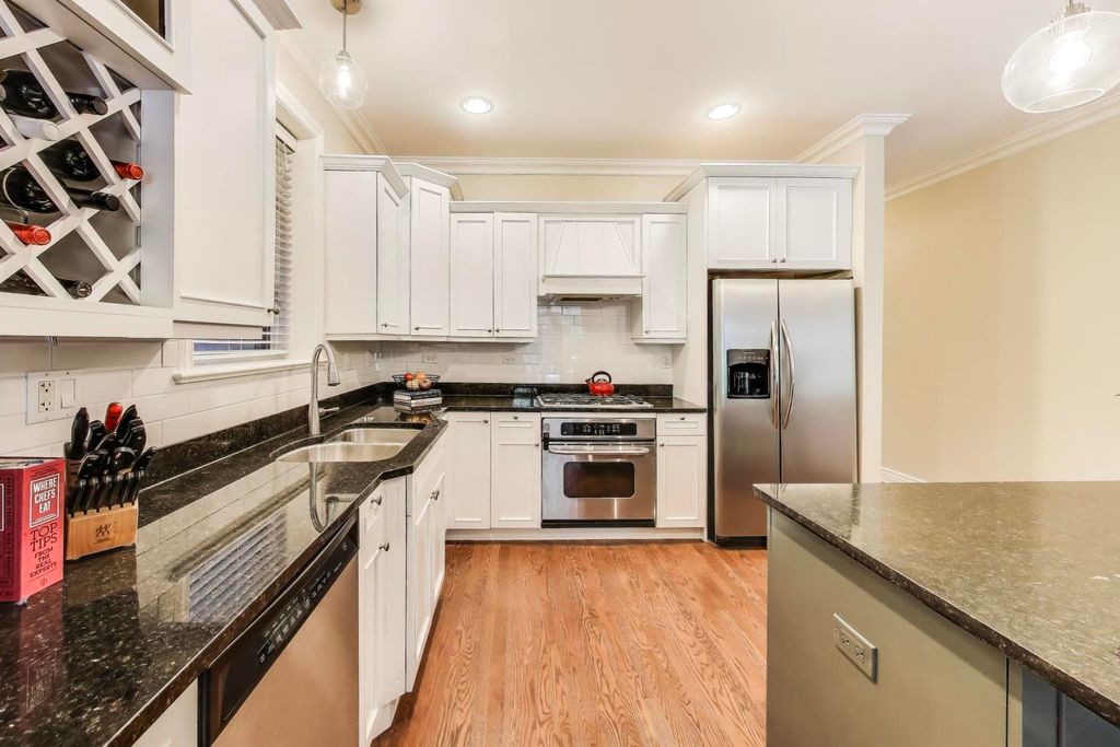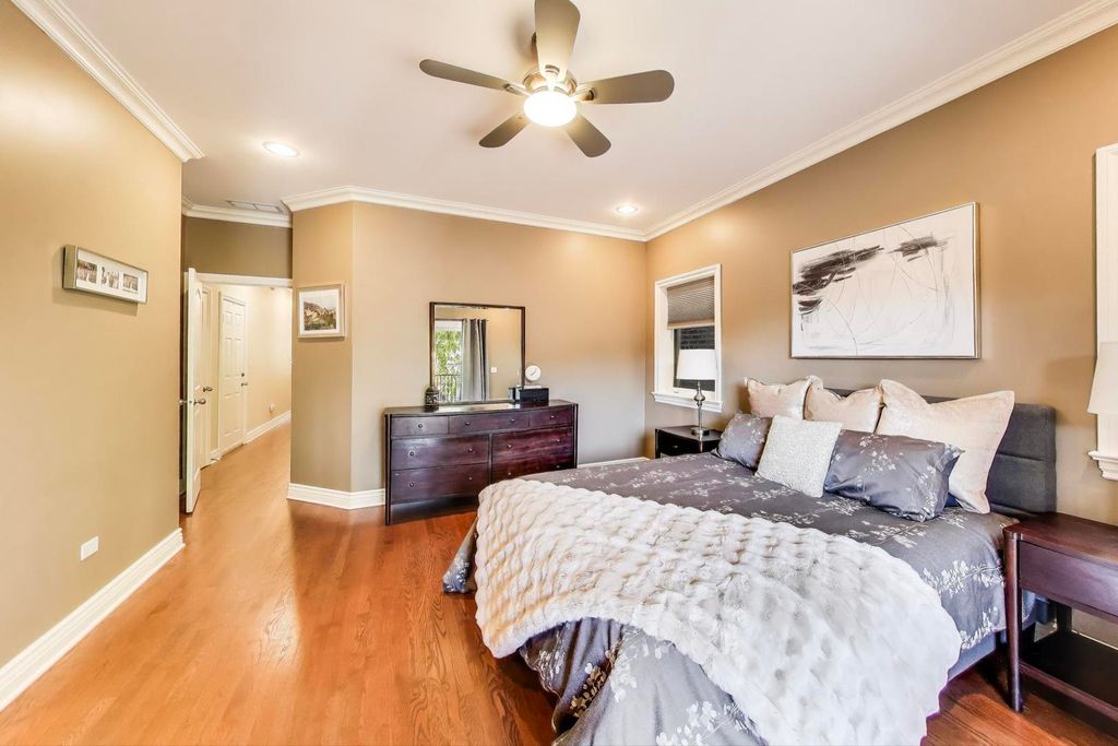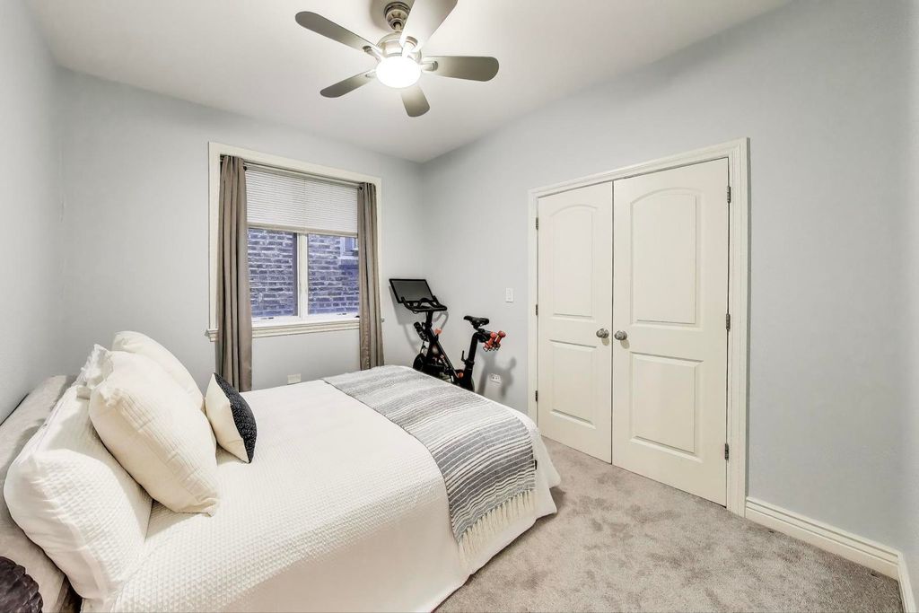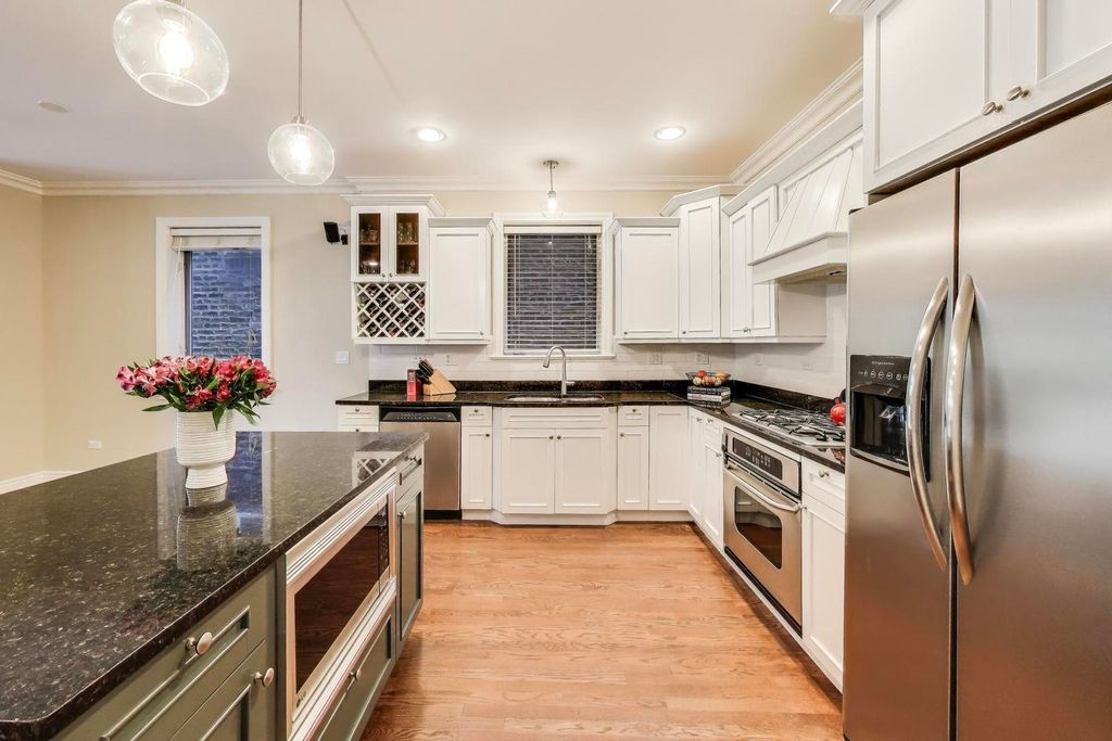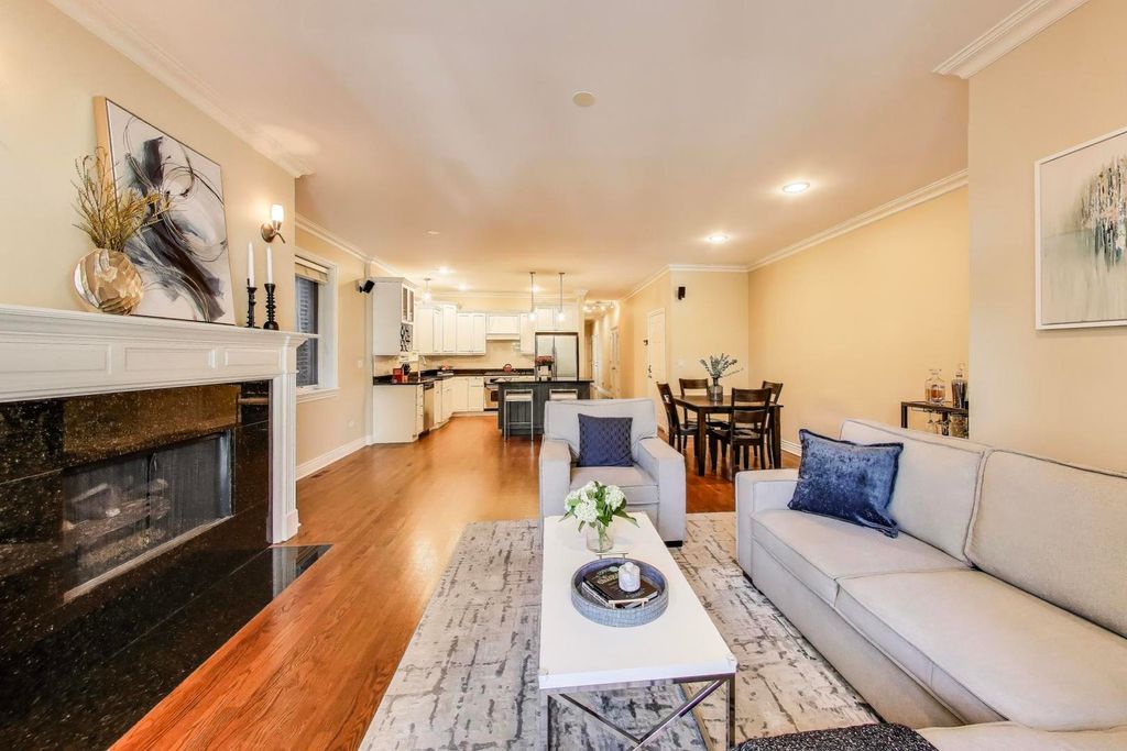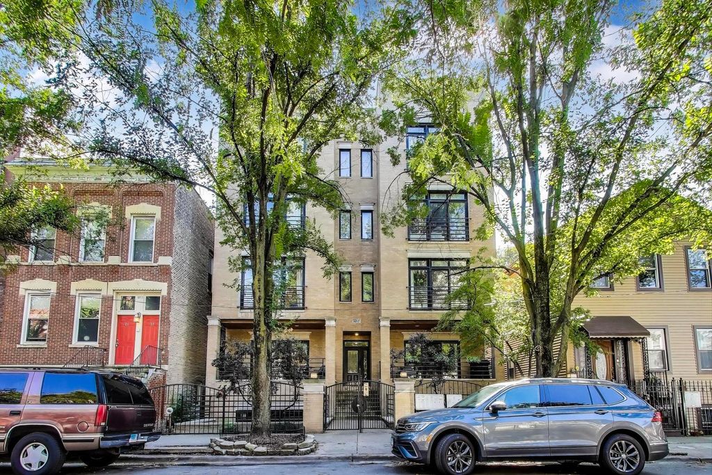 Discover the charm of Noble Square, positioned in a prime location bridging West Town and Wicker Park. 1455 W Thomas, #2E is a spacious 3-bedroom, 2-bath simplex condo in a boutique all-brick building on a tree-lined street. The kitchen features white cabinets, a custom hood, quartz countertops, stainless steel appliances, and built-in wine rack. The open concept design seamlessly connects the kitchen, living, and dining areas, making it perfect for entertaining. Enjoy evenings by the gas fireplace, or gather around the large kitchen island with family and friends. Refinished hardwood floors flow throughout the condo, leading into the primary bedroom, which comfortably accommodates a king-sized bed and dual nightstands. The primary suite includes a walk-in closet, spacious 19 x 11 private deck and ensuite bathroom - stone shower with body sprayers, separate whirlpool tub, towel warmer and a double-sink vanity. The second and third bedrooms are generously sized with large closets, providing flexibility for a guest room, nursery, or home office. For commuters, this location is unparalleled, offering access to the Division Blue Line, multiple bus routes (Ashland, Milwaukee, Division), and convenient proximity to I-90/94 and I-290. This unit includes attached heated garage parking and a large walk-in storage closet. Fresh 2025 updates include a new kitchen backsplash, pendant lighting, kitchen faucet, and dual faucets in the primary bathroom. The HVAC, water heater, and bedroom carpet were updated in 2020.