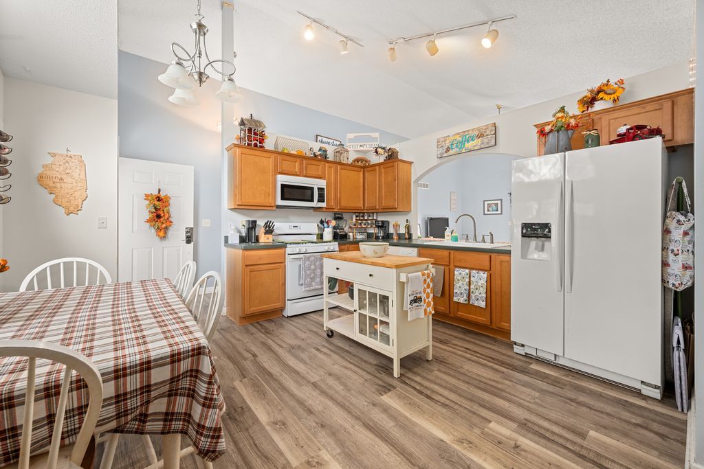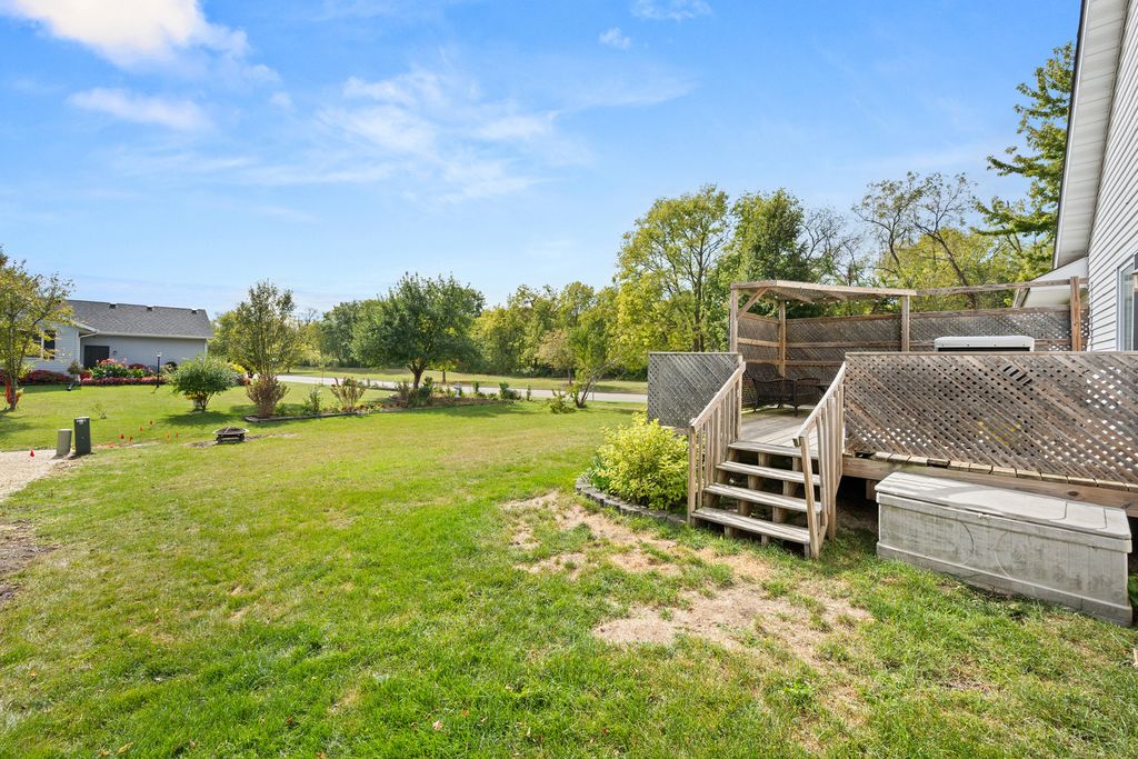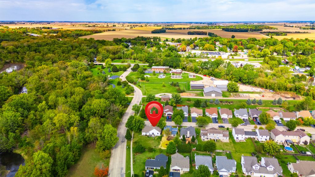 Charming 3-bedroom, 2-bath ranch. The eat-in kitchen offers a pantry, built-in desk, and arched windows that fill the space with natural light. A spacious living room features new flooring, vaulted ceiling and sliding doors that open to a brand-new deck, perfect for entertaining or relaxing outdoors. The primary bedroom includes a walk-in closet, an additional wall closet, and a full private bath. Additional highlights include an attached 2-car garage and professionally landscaped yard. Ideally located near the Kishwaukee River and Carroll Park, this home combines comfort, convenience, and a beautiful setting.